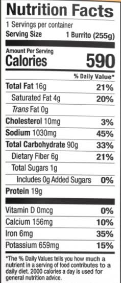 Ingredients: Water, Enriched Flour (Bleached Wheat Flour, Niacin, Reduced Iron, Thiamine Mononitrate, Riboflavin, Folic Acid), Pinto Beans, Vegetable Oil (Soybean, Canola And/Or Corn Oil), Cheddar Cheese (Pasteurized Milk, Cheese Cultures, Salt, Enzymes, Annatto [Color]), Contains 2% Or Less, Salt, Chili Pepper, Baking Powder (Sodium Bicarbonate, Corn Starch, Sodium Aluminum Sulfate, Calcium Sulfate, Monocalcium Phosphate), Guar Gum, Dough Conditioner (Sodium Metabisulfite, Corn Starch, Microcrystalline Cellulose, Dicalcium Phosphate), Wheat, Soy, Milk Contains: Milk, Soy, Wheat, Corn