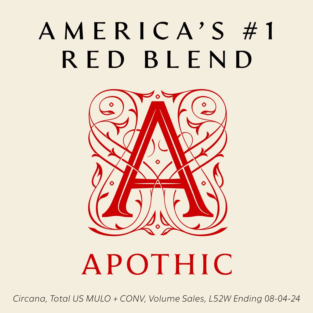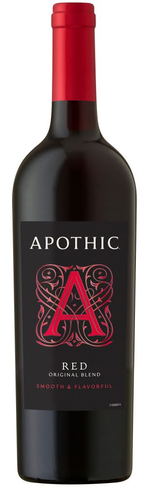 Inspired by the Apotheca, a mysterious place where wine was blended and stored in 13th century Europe, Apothic Red offers a truly unique win experience. A masterful blend of rich zinfandel, smooth merlot, flavorful Syrah and bold cabernet sauvignon creates layers of dark red fruit complemented by hints of vanilla and mocha. www.apothic.com. Alc. 13.5% by vol. Bottle by Apothic Wines, Modesto, CA. • Alcohol by volume: 13.5% • 2022