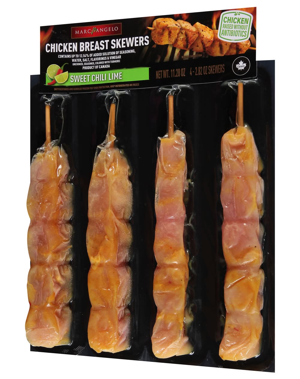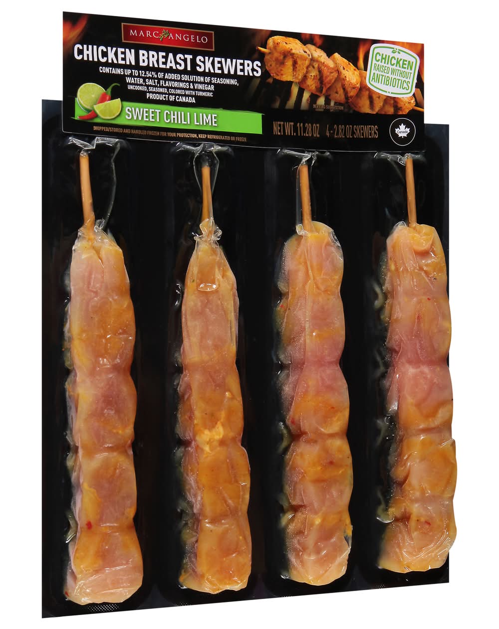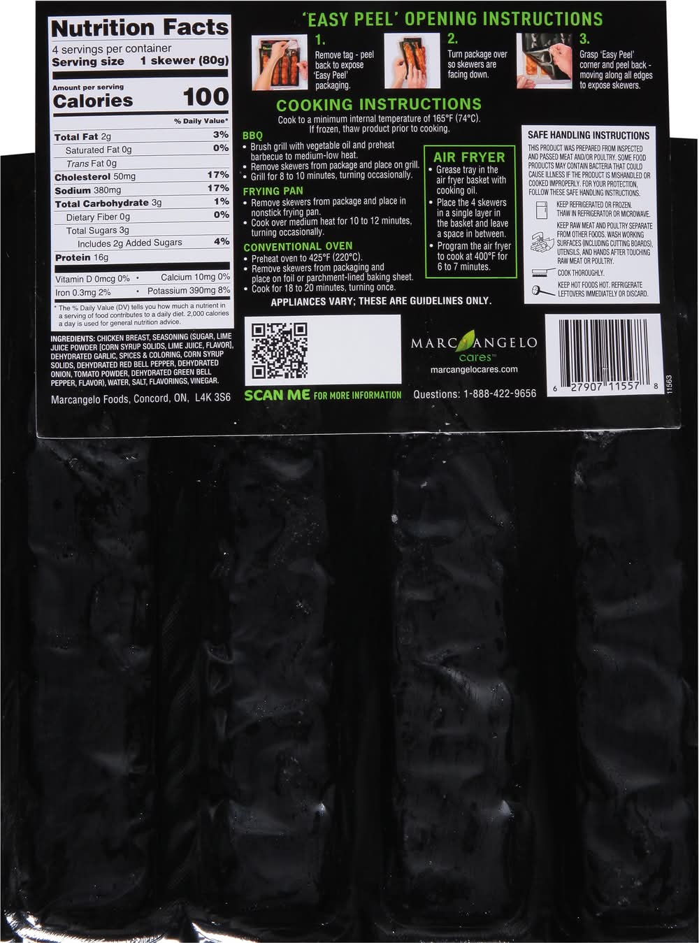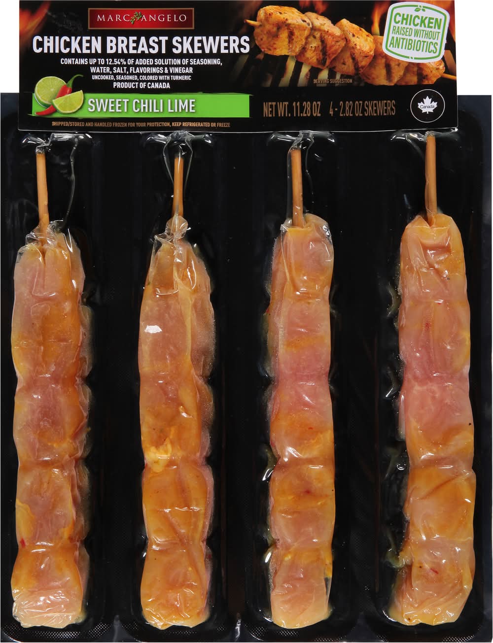 Marcangelo Foods Chicken Breast Skewers, Sweet Chili Lime (4 x 2.82 oz)