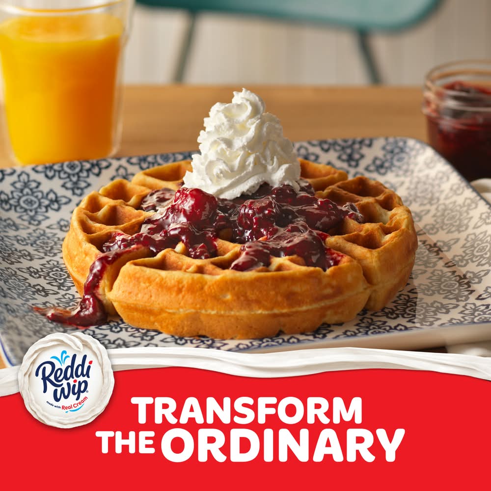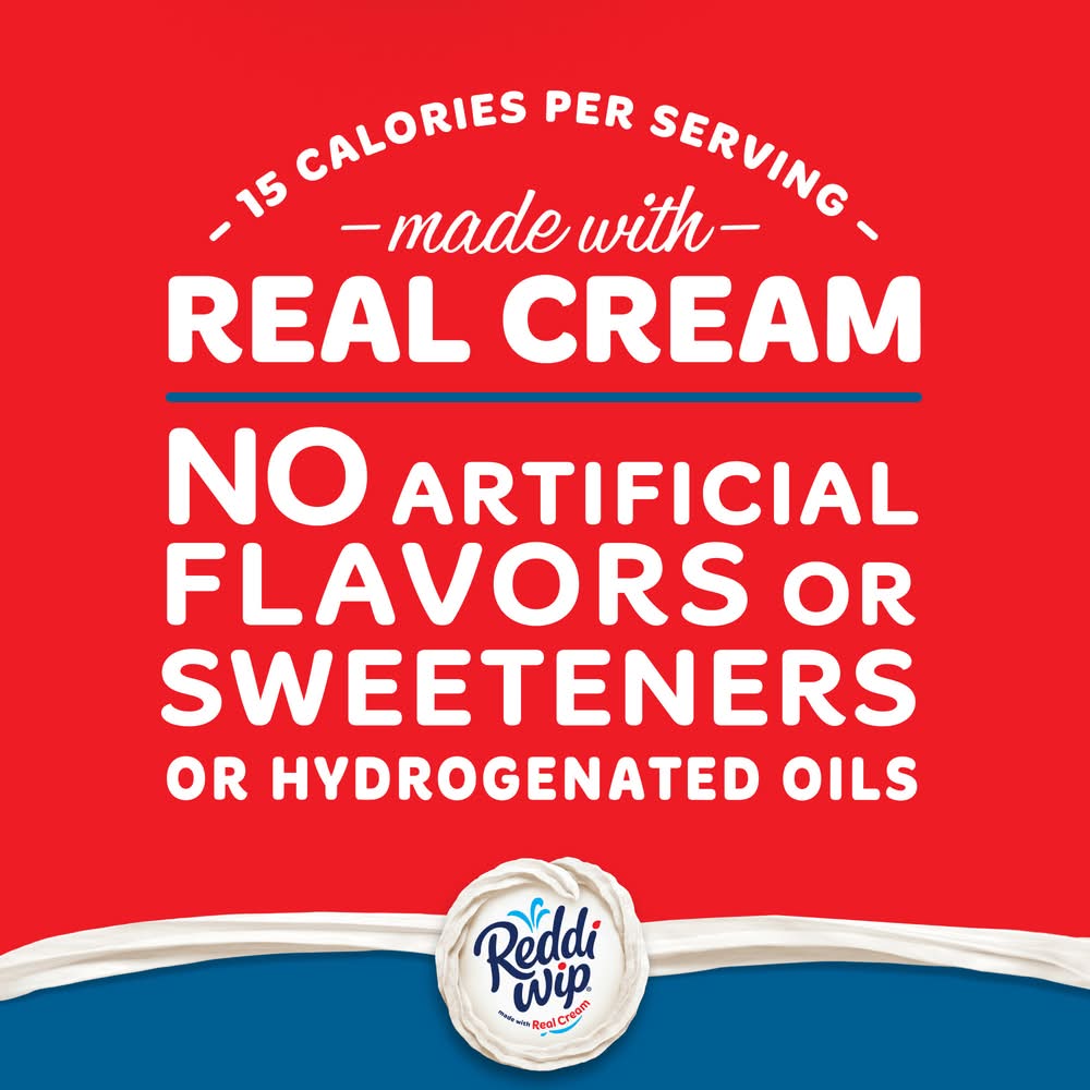 Serve up a delicious, rich cream taste with Reddi-wip Original Whipped Topping for a versatile dessert topping. The original version of this dairy whipped topping offers a creamy texture and sweet flavor you know and love. Made with real cream as the first ingredient, this whipped topping has 15 calories per serving, is gluten free and is made without hydrogenated oils, which are commonly found in other whipped topping products. Reddi-wip adds delicious flavor and excitement to countless desserts such as strawberry shortcake, pies, sundaes, milkshakes and brownies. Use for classic ice cream toppings with sprinkles. Not only is this whipped topping great for tasty desserts, but you can add some extra joy to fruit, hot cocoa and coffee, or use on pancakes and waffles for a fun kids breakfast. It also makes a delicious base for whipped frosting. Forget all the hassle of whipped cream, this spray couldn’t be easier to use. Simply shake the can, flip it over and push the nozzle down. Store Reddi-wip in the refrigerator. Whether you’re celebrating holidays with the family, enjoying breakfast or dessert after dinner, Reddi-wip Original Whipped Topping brings something special. Reddi-wip can transform any moment.
