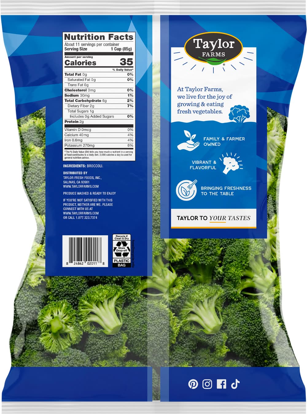 Directions for use: Directions: Garlick Broccoli: 6 cups Taylor Farms Broccoli Florets; 1/4 cup soy sauce; 2 clover fresh garlic, minced; 1 tsp. sriracha. In a large pot of boiling water, blanch broccoli for 2-3 minutes, until tender. Combine cooked broccoli, garlic, soy sauce, and sriracha and stir. Perishable - Keep refrigerated. Storage recommendation: Perishable - Keep refrigerated.