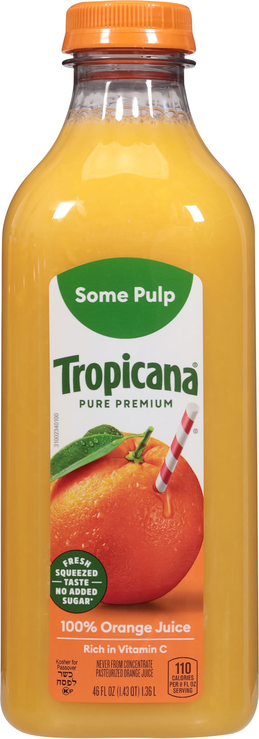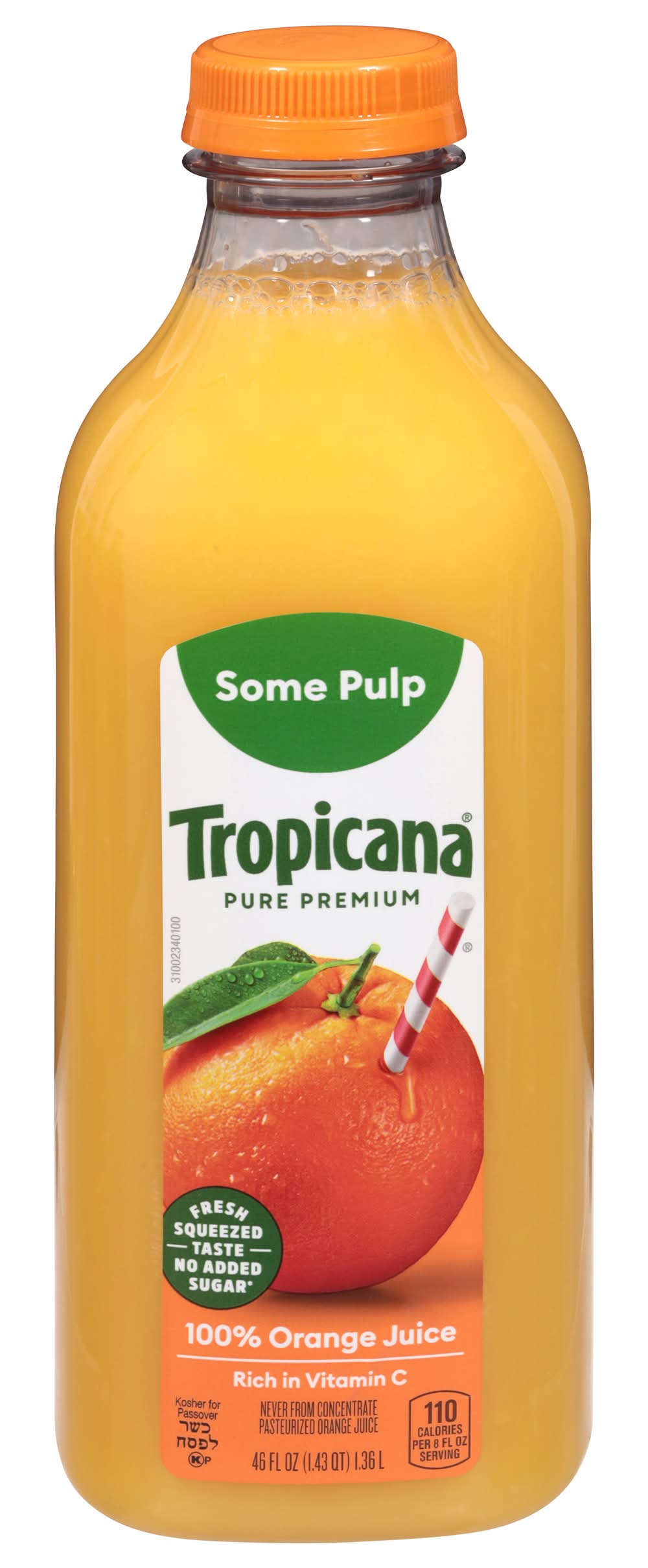 Tropicana , Some Pulp 100% Orange Juice • Flavor: Orange • Packaging: Reusable