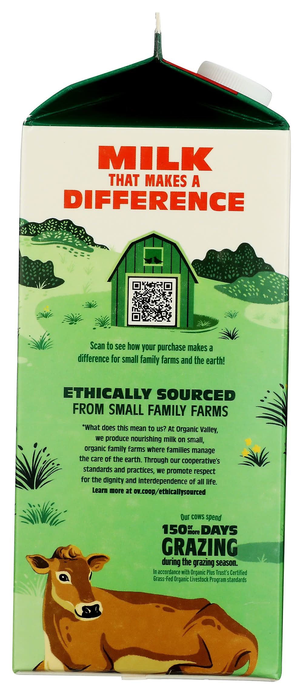 Naturally occurring omega 3 this milk contains an average of 1000 mg omega 3 and 90 mg CLA per serving. Vitamin D. No GMOs. Ultra pasteurized. No grain diet. Ethically sourced from small family farms, we produce nourishing milk on small, organic family farms where families manage the care of the animals and the earth. Through our cooperative's standards and practices, we promote respect for the dignity and interdependence of human, animal, plant, soil, and global life). The goodness of grass in every glass. It's all in the name. Delicious milk from cows that graze in organic pastures and eat organic grasses and plants, but no grain. Unique and creamy, with naturally occurring omega 3s, this is grass fed you can trust. We're proud to be a part of organic plus trust's certified organic grass-fed livestock program-a third party certification that verifies the integrity of this milk from farm to creamery to carton. Organic plus trust. Certified grass fed organic. Our organic ideals. Never expire organic valley helped write the first USDA organic livestock standards in 2001 and we remain just as committed to organic agriculture today. Our farms are certified organic and follow our cooperative's standards. This means: no antibiotics no synthetic hormones our cows are not treated with rbst in compilance with USDA organic standards. Plus our cooperative dairy animal care standards prohibit the use of synthetic hormones, even those allowed under USDA organic rules no toxic pesticides USDA organic standards or prohibit the use of pesticides harmful to human health. Our cows spend more time outside than 95% of cows in the U.S comparison of co op data and Nahms 2007 dairy studies. Homogenized. • Cropp Cooperative La Farge, Wi 54639. • Packaging: Reusable