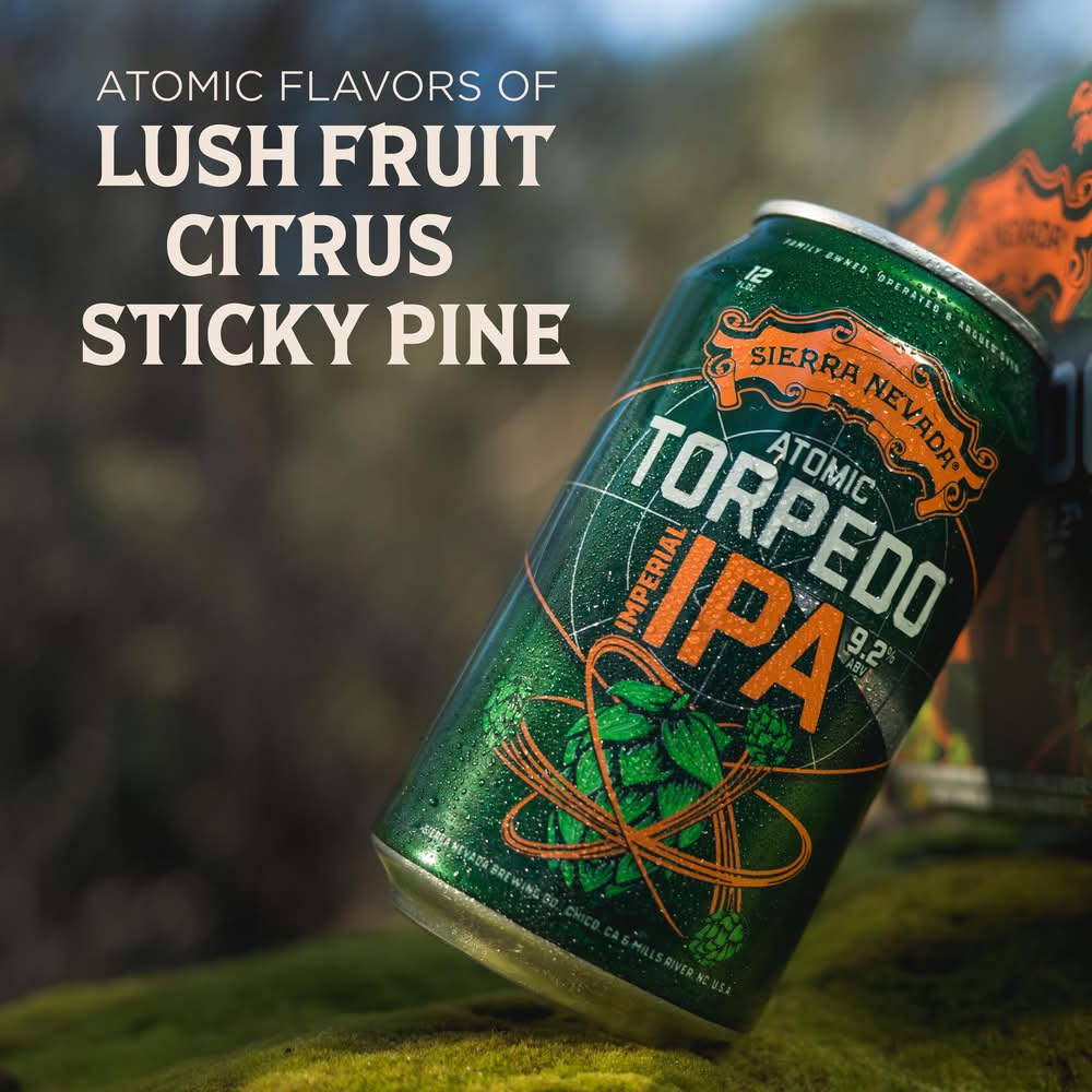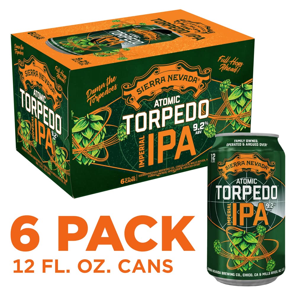 Atomic Torpedo is our East Coast–West Coast hop collision, unleashing the joint power of two styles: juicy East Coast IPAs and dank West Coast IPAs. Fused in this Double IPA, their hop flavors span lush fruit, sticky pine, and floral tones. It’s our classic IPA transformed—soft yet assertive, approachable yet atomic. • Pack size: 6 • Alcohol by volume: 9%