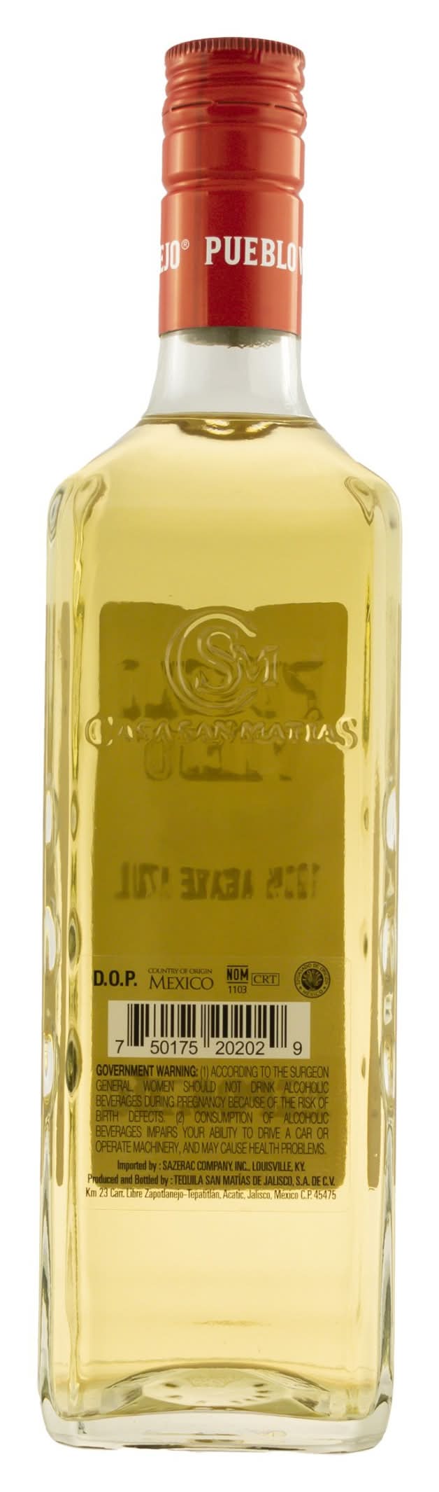 Pueblo Viejo Reposado Tequila 750ml 80 Proof Alcohol by volume: 40%