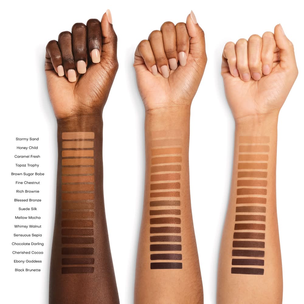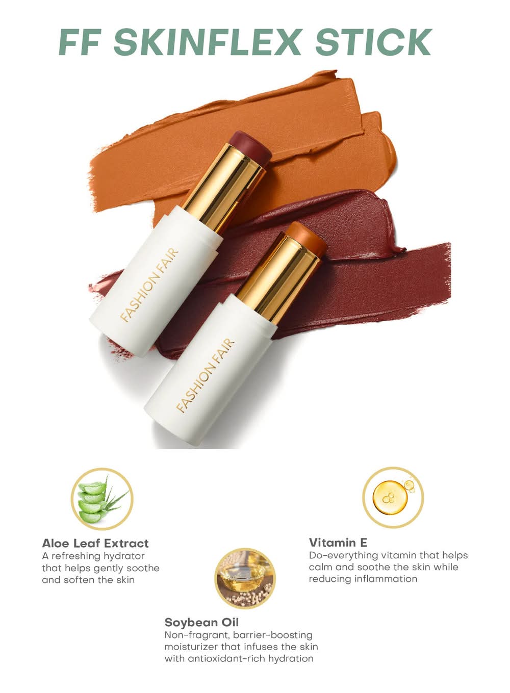 What it is: A lightweight, creamy, blendable foundation stick that delivers high-pigment coverage with a natural, semi-matte finish. Coverage: Full Finish: Natural Formulation: Stick Best For: All skin types. Highlighted Ingredients: - Tribehenin: Glycerin-derived, fatty acid-infused humectant that helps avert moisture loss. - Rice Bran Wax: Antioxidant-rich extract that helps moisturize without blocking pores. - Aloe Leaf Extract: Refreshing hydrator that gently soothes and softens. Ingredient Callouts: Free of parabens, formaldehydes, formaldehyde-releasing agents, phthalates, mineral oil, retinyl palmitate, oxybenzone, coal tar, hydroquinone, sulfates SLS & SLES, triclocarban, triclosan, and contains less than one percent synthetic fragrance. It is also vegan and cruelty-free. What Else You Need to Know: The nutrient-rich ingredients in this foundation hydrate, moisturize, condition, and give skin an antioxidant boost. Crease-resistant pigments help even the appearance of hyperpigmentation and uneven skin tones for a smoother, brighter complexion. These shades are designed for darker skin tones and all skin types. Color: Caramel fresh