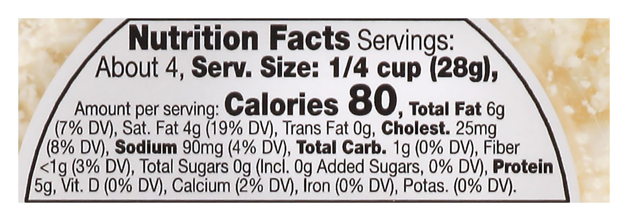 Ingredients: Cultured Pasteurized Goat's Milk, Powdered Cellulose (to Prevent Caking), Salt, Enzymes. Contains: Milk