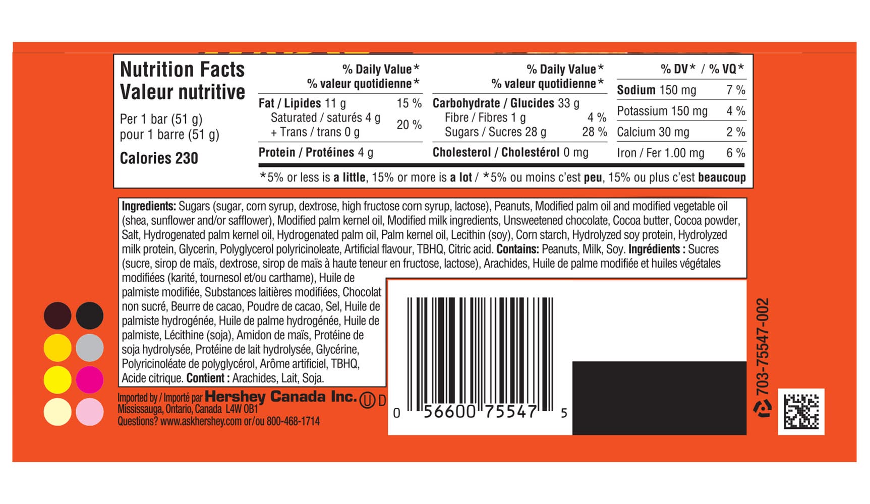 REESE'S + Nougat peanut butter and soft nougat covered in a deliciously rich chocolatey coating is the perfect candy bar for on-the‐go. Flavor: Milk chocolate peanut butter & nougat