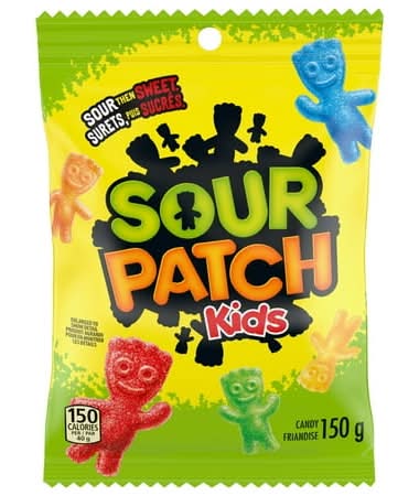 Sour Patch Kids Original Soft & Chewy Candy packs all the classic flavor into a mischief-filled soft candy. Each bag of candy contains red candy, along with blue, orange, yellow and green candy in signature assorted fruit flavors that create a Sour then Sweet candy to satisfy your taste buds. Add a little fun to your snack with the unique kid shapes that gives these candies their name. Enjoy this bagged candy whenever you want a Sour then Sweet treat by keeping a package on-hand for quick snacks or as holiday candy for Halloween, Valentine's Day or even for a candy lover's birthday. Sour Patch Kids soft candy also makes a great movie theater candy to snack on during your favorite flick. Use them in your favorite dessert recipe, or set them out at a candy bar for your next party. This candy comes in a sealed bag to maintain its signature softness and Sour then Sweet flavour. Flavor: Assorted