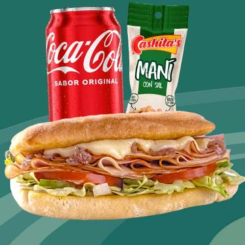 Combo Sandwich Jamonchis Deluxe + Cachita tubo 55g + Coca Cola Lata 12 oz