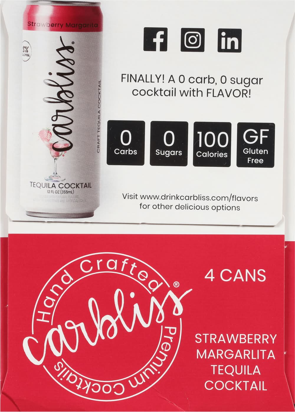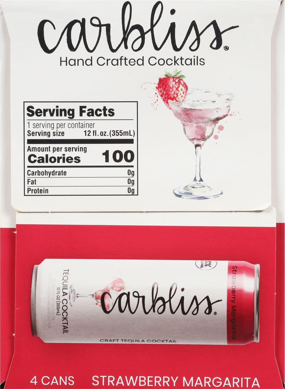 Carbliss Hand Crafted Premium Cocktails, Strawberry (4 x 3 fl oz)
