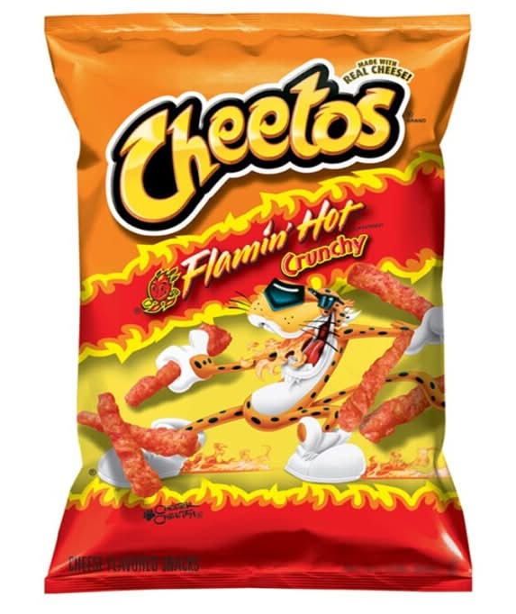 Cheetos snacks are the much-loved cheesy treats that are fun for everyone You just can’t eat a Cheetos snack without licking the signature cheetle off your fingertips. And wherever the Cheetos brand and Cheeto Cheetah go, cheesy smiles are sure to follow. Hot, spicy flavour packed into crunchy, cheesy snacks. Cheetos Crunchy FLAMIN’ HOT Cheese Flavoured Snacks are full of flavour and made with real cheese. Imported from the USA. • Brand: Cheetos • Flavor: Flamin hot
