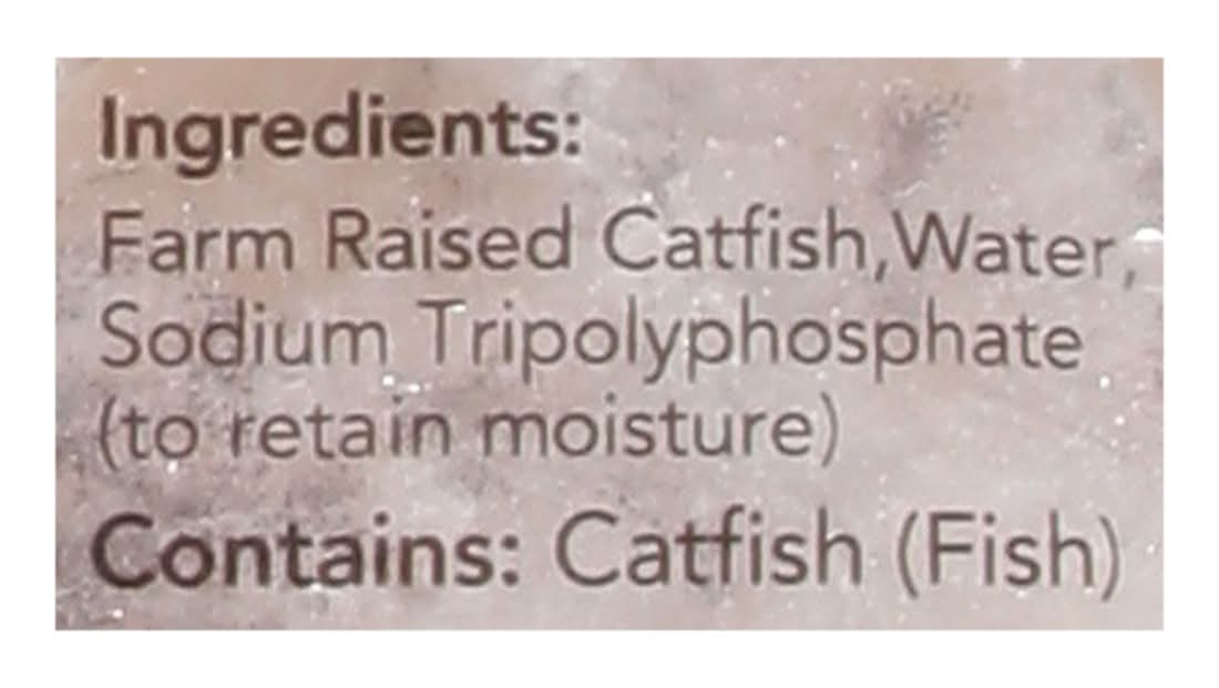 Ingredients: Farm Raised Catfish, Water, Sodium Tripolyphosphate (to Retain Moisture) Contains: Fish, Catfish