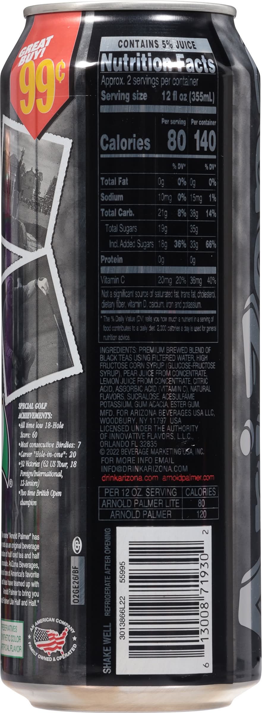 • Flavor: Lemonade • Alcohol by volume: 5% • Arizona Beverages USA, Woodbury,NY 11797 • $0.05 deposit included