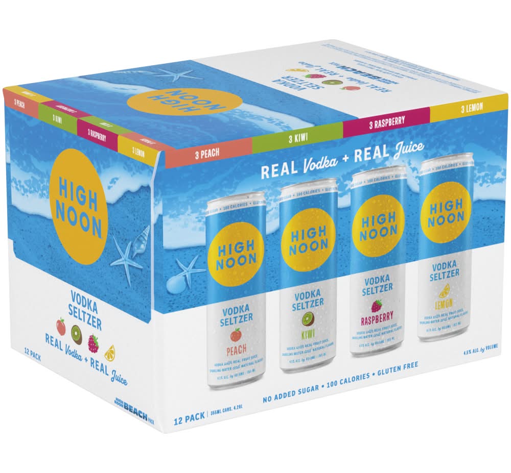 High Noon Vodka Hard Seltzer Variety pack, Peach-Kiwi-Raspberry-Lemon (12 x 355 ml)