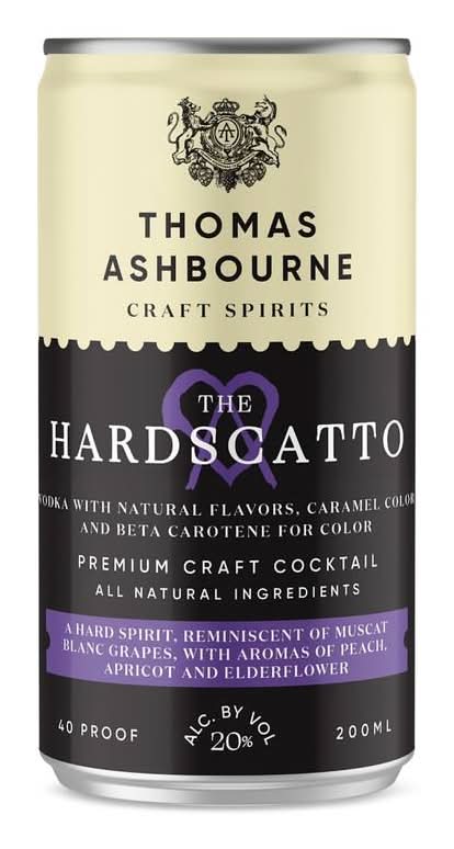Hardscatto is a hard spirit offering a complex bouquet that includes the essence of Muscat Blanc grapes, complemented by aromatic hints of peach, apricot, and elderflower. Presented in a convenient package of four 200ml cans, it provides a unique tasting experience. • Flavor: Hardscatto • Pack size: 4 • Alcohol by volume: 20%