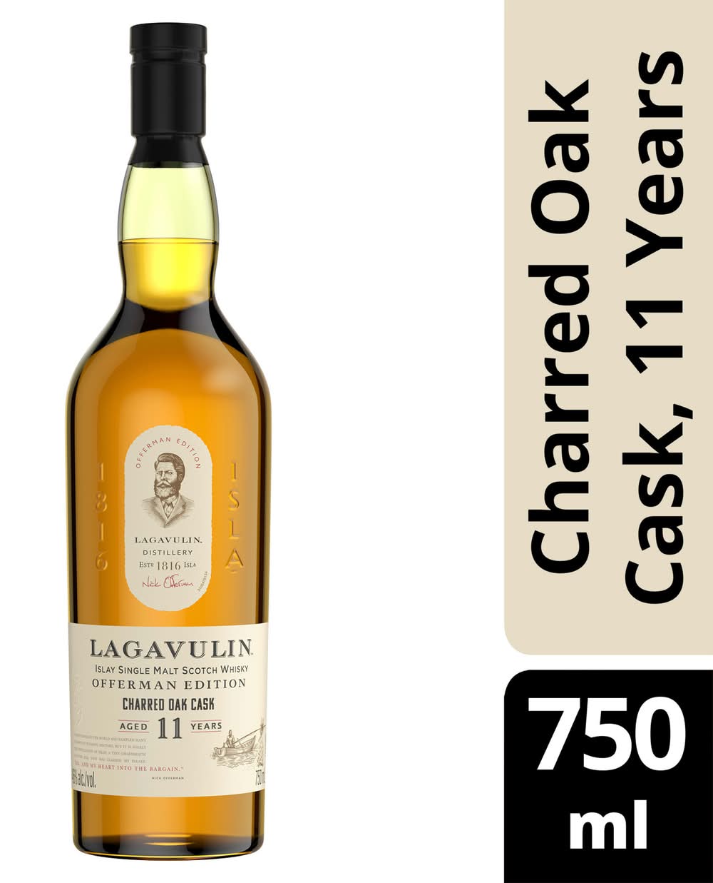 For their third limited release, Lagavulin and Nick Offerman crafted Lagavulin Offerman Edition Charred Oak Cask 11 Year Old Islay Single Malt Scotch Whisky as the perfect whisky to sip with the perfect steak. This Lagavulin Single Malt Scotch Whisky is matured for at least 11 years in heavily charred former bourbon and red wine barrels. The resulting flavor features hints of round red berries, a touch of briny saltiness, notes of vanilla, and the signature Lagavulin intense peat. Best enjoyed as Offerman intended, with a grilled medium-rare rib-eye steak - or any robust meal - either neat or on the rocks. Includes one 92 proof 750 mL bottle of Lagavulin Offerman Edition Charred Oak Cask 11 Year Old Islay Single Malt Scotch Whisky. Please drink responsibly. Alcohol by volume: 46%