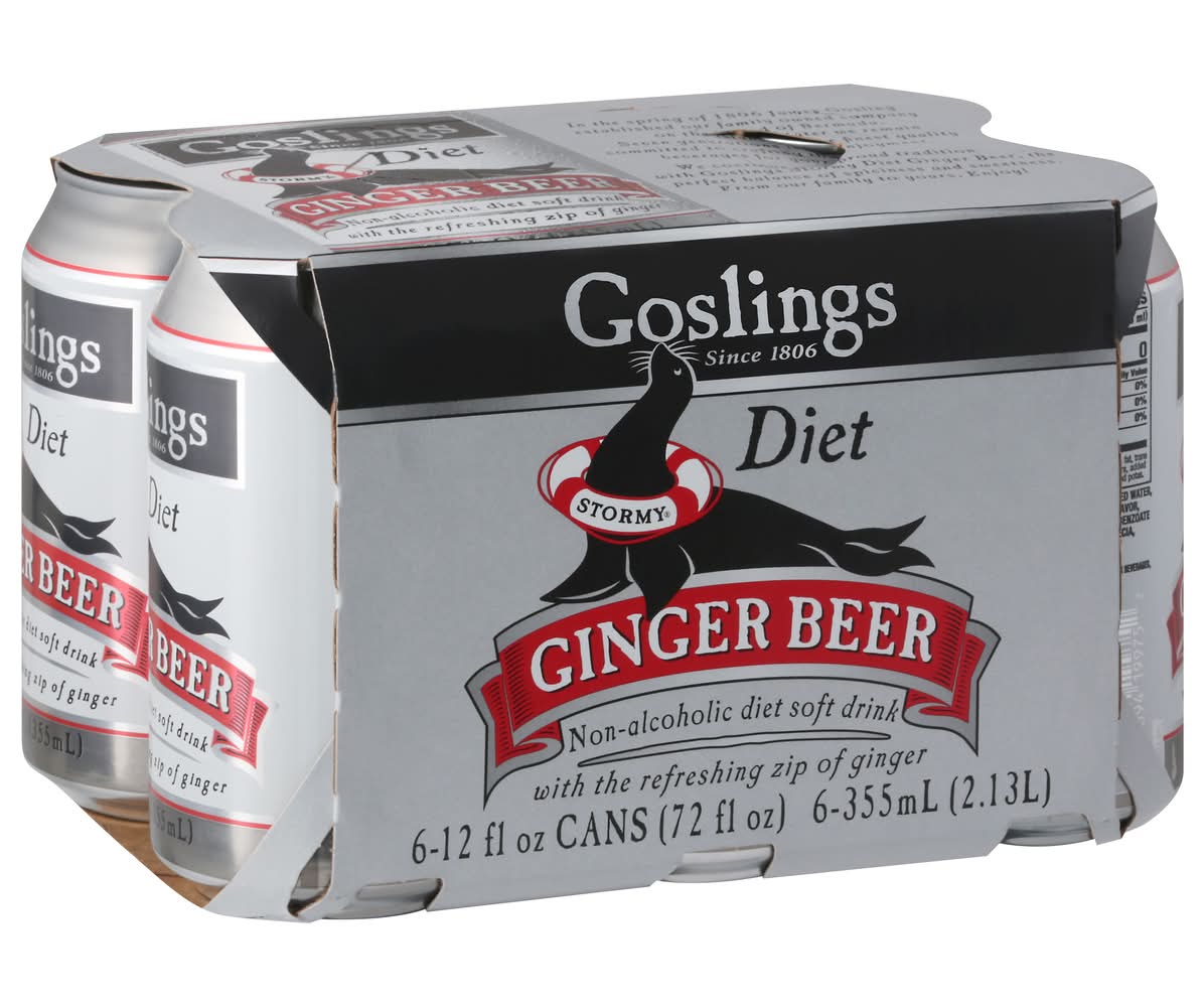 Non-alcoholic diet soft drink with the refreshing zip of ginger. Since 1806. Non alcoholic diet soda. In the spring of 1806 James Gosling established our family owned company on the island of Bermuda. Seven generations later we remain committed to crafting the finest quality beverages for your enjoyment. We continue this proud tradition with Goslings Stormy Ginger Beer, the perfect balance of spiciness and sweetness. • Pack size: 6 • Packaging: Reusable