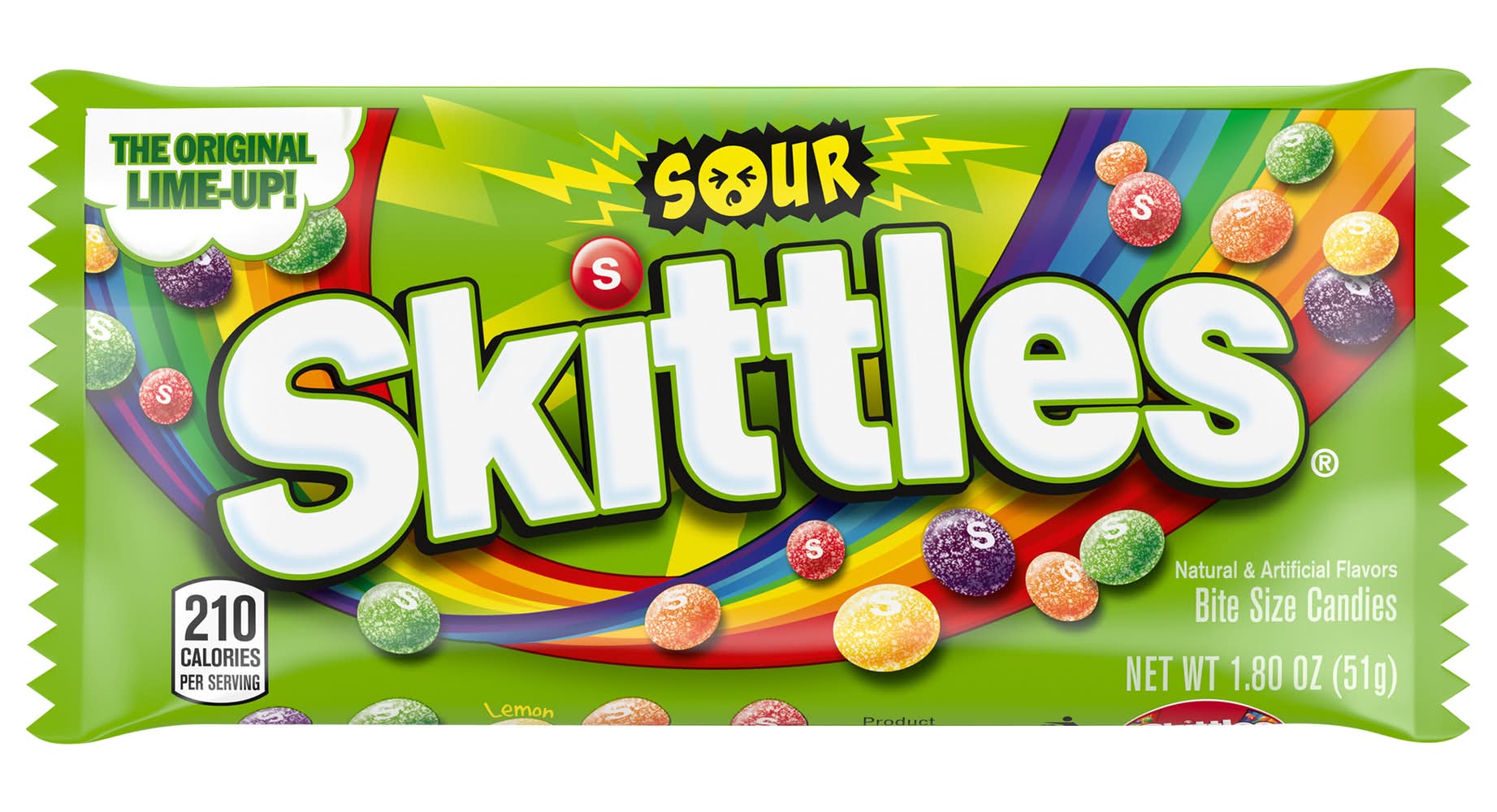 The original rainbow you’ve been waiting to taste again! Sorry, it took so long, but SKITTLES Sour chewy candy welcomes back the citrus flavor, Lime. This full size bag of SKITTLES Sour candy is packed with the classic sour variety flavors, including sour strawberry, sour lemon, sour orange, sour grape, and sour lime. This bite size fruity candy assortment is a deliciously sweet and sour candy treat. Enjoy SKITTLES sour chewy candy while watching a movie, while playing the game or while scrolling through your favorite timeline. Drop a bag of SKITTLES Sour in your work bag, lunchbox, or backpack to bring chewy candy fun to your day. Share Sour SKITTLES with family and friends as a snack or to decorate your favorite baked goods recipe. There's no wrong way to enjoy the fruity, mouth-watering taste of SKITTLES Sour candy assortment especially now that Lime is back. It’s time to celebrate the return of LIME SKITTLES! Order your bag of SKITTLES Sour candy today and reintroduce your taste buds to the original taste of the rainbow. Flavor: Assorted