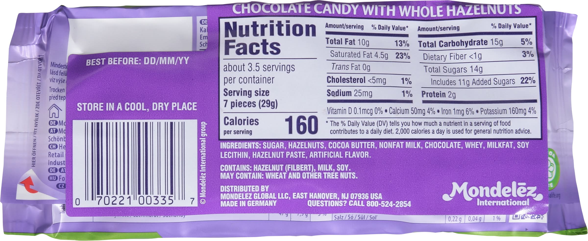 Milka Milk Chocolate Confection With Whole Hazelnuts (3.5 oz)