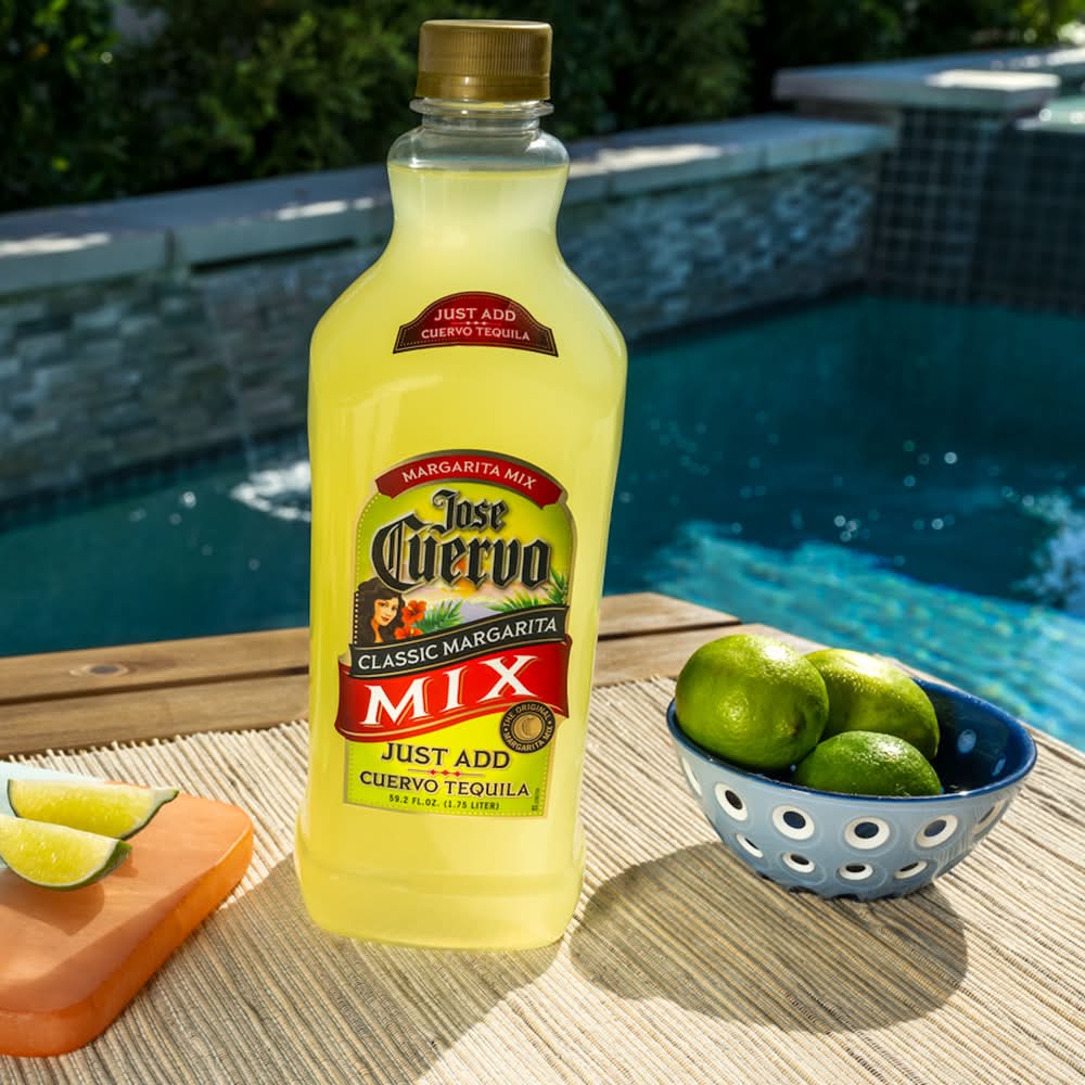 Jose Cuervo Classic Lime Margarita Mix has a tart lime flavor that fades into creamy lemon. On the rocks or frozen with crushed ice, it is the easiest way to enjoy America’s favorite cocktail - just add Cuervo® tequila and serve! • Alcohol by volume: 1% • Jose cuervo, Lawrenceburg,IN • Packaging: Reusable