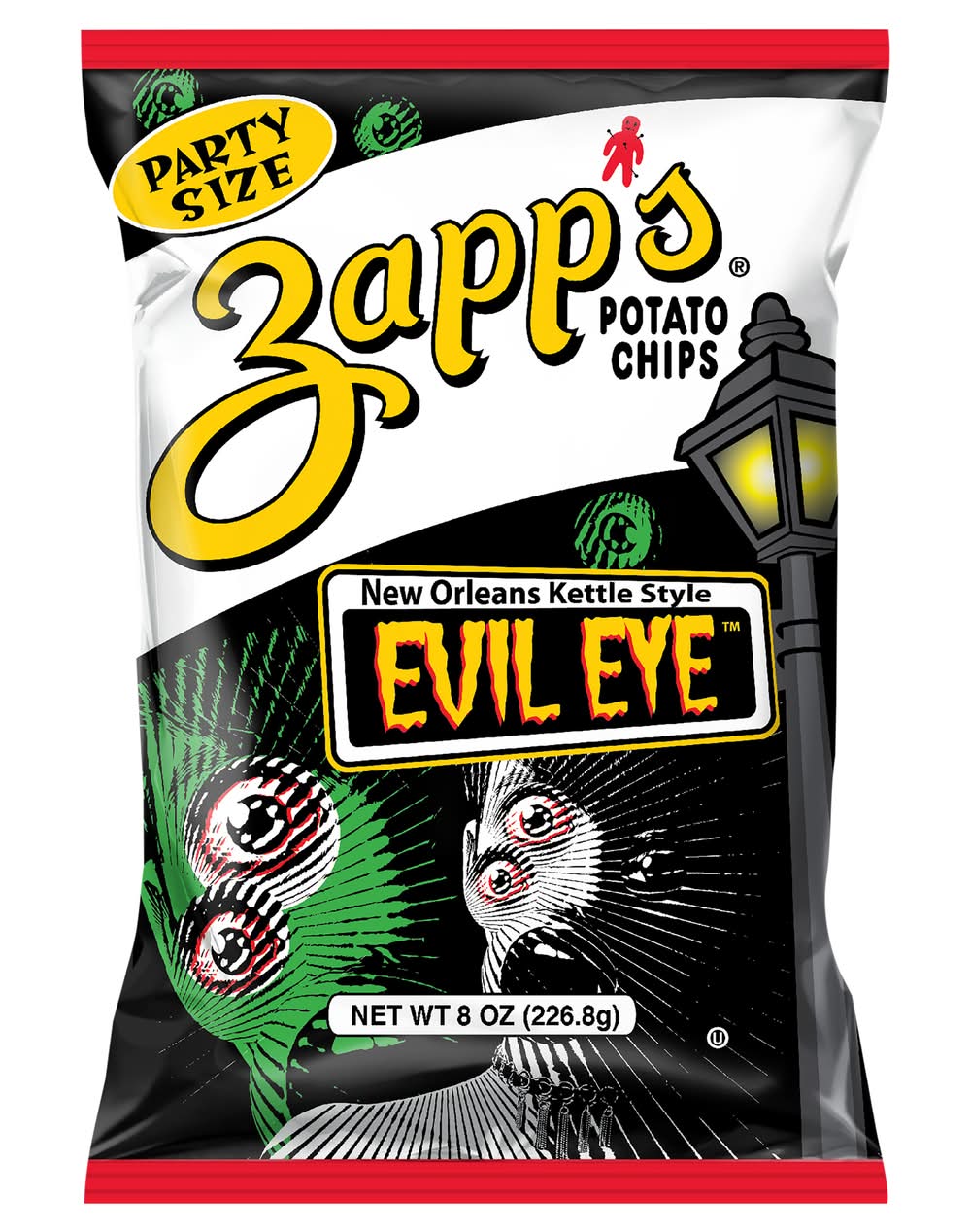 Gluten free. Beware of the Evil Eye! The famous New Orleans Voodoo Queen, Marie Laveau, Was rumored to have one. In this spirit, Zapp's Evil Eye Kettle Style Potato Chips are subtle with mild heat, yet bursting with flavor. Experience the essence of New Orleans with Zapp's Evil Eye. Try if you dare! -The Folks at Zapp's Potato Chips. Enjoy great tasting Zapps'