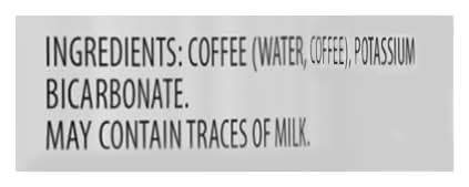 Ingredients: Coffee (Water, Coffee), Potassium Bicarbonate Contains: Milk