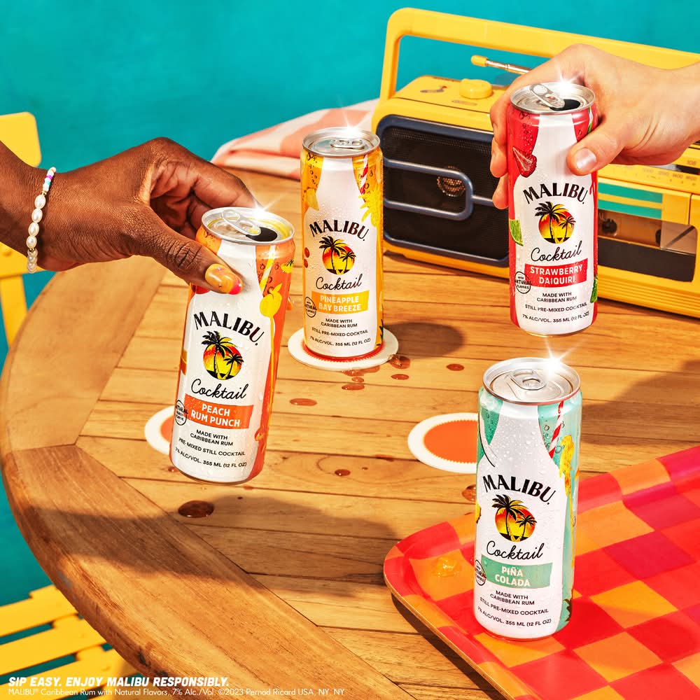 Enjoy the delicious and refreshing taste of the ready-to-sip Malibu Variety Pack, including flavors like Pineapple Bay Breeze, Pina Colada, Strawberry Daquiri and Peach Rum Punch, all in convenient and sleek 12 fl oz cans that are perfect for your next hangout. • Flavor: Assorted • Pack size: 8 • Alcohol by volume: 7%