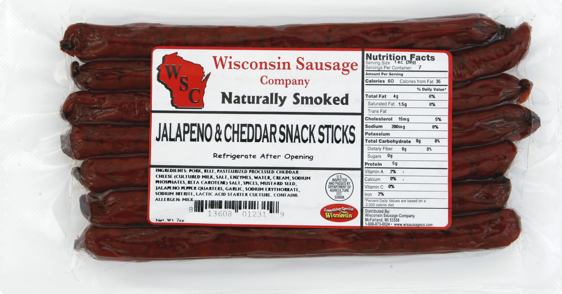 Wisconsin Sausage Company Jalapeno & Cheddar Snack Sticks (7 oz)
