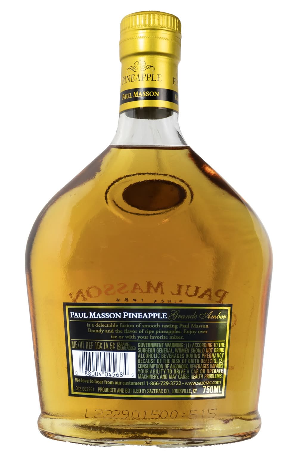 Paul Masson Pineapple Grande Amber Brandy 750ml 54 Proof • Flavor: Pineapple • Alcohol by volume: 27% • Number of servings: 16