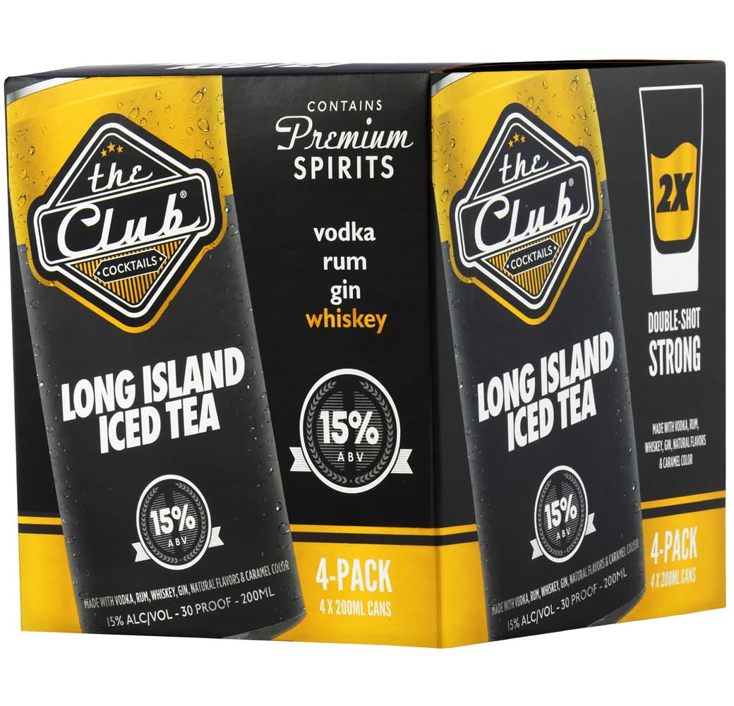 The Club Long Island Iced Tea 4 Pack 200ml 30 Proof • Pack size: 4 • Alcohol by volume: 15%