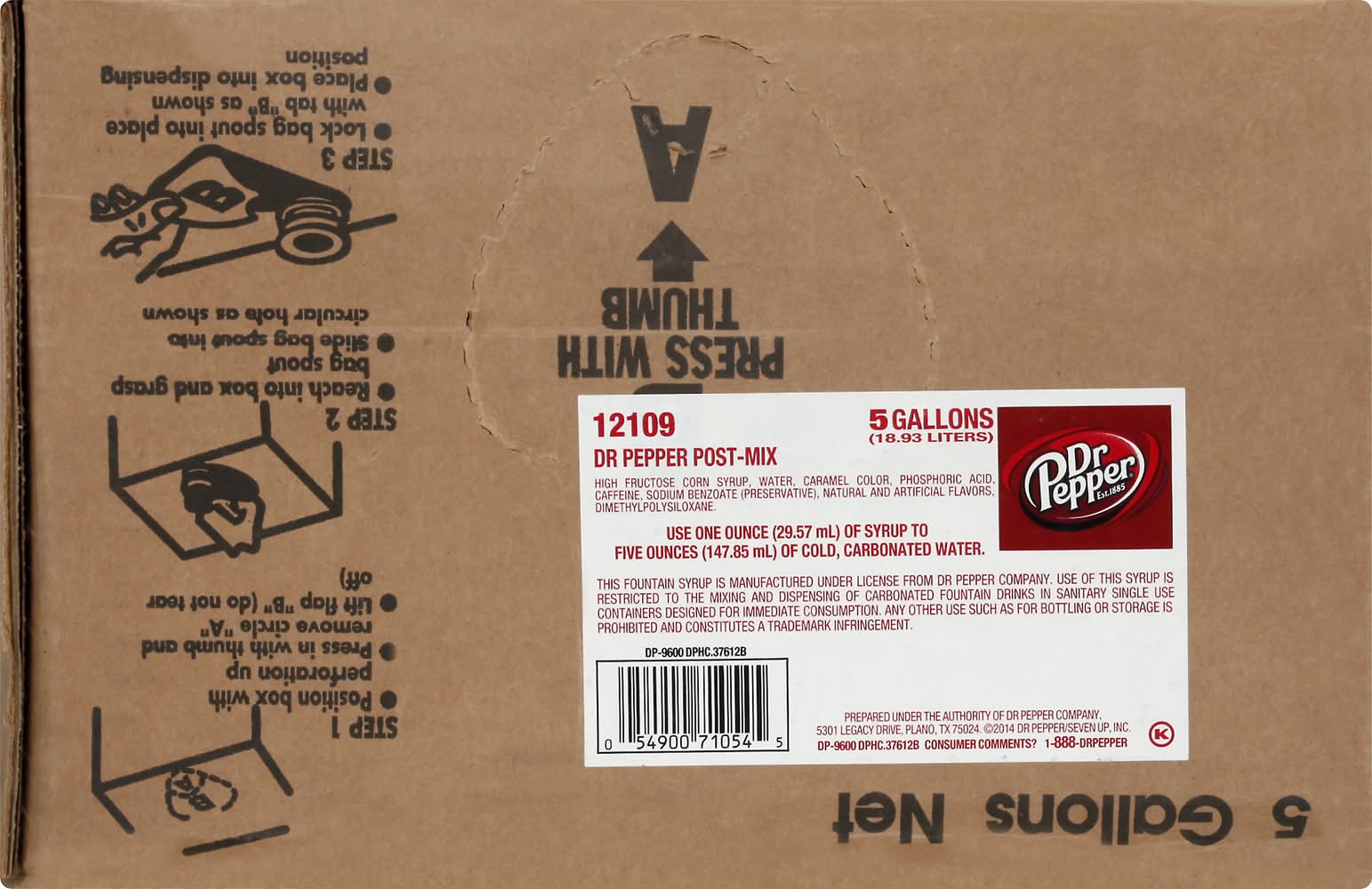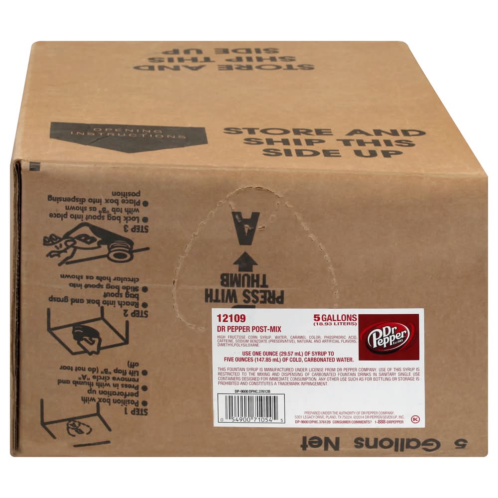 Cola, Post-Mix, 5 Gallons Dr Pepper/Seven Up, Inc., Plano, TX, 75024, Ph: 888-DRPEPPER