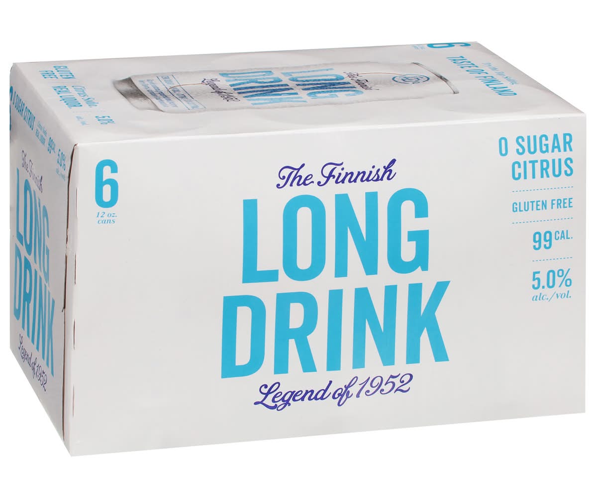 Experience the drink beloved by Finland for over 70 years with 0g of sugar when you sip The Long Drink, Zero. Unlike seltzers or hard ciders made with fermented sugar, Long Drink is made with an award-winning liquor that is smooth, refreshing and doesn't leave you with that full beer feeling. The Long Drink is in a category all its own, and the Traditional Citrus flavor is a balanced mix of real liquor and natural grapefruit and juniper berry flavors. Gluten free, all natural and made with zero sugar, The Long Drink Zero offers a unique flavor that everyone loves. An award-winning ready to drink cocktail, The Long Drink received Gold at the NY International Spirit Competition, American Distilling Institute, Proof Awards and Tastings.com. Each 12 fl oz can has a 0g of sugar and 5% alcohol by volume and should be enjoyed responsibly. • Pack size: 6 • Alcohol by volume: 5%