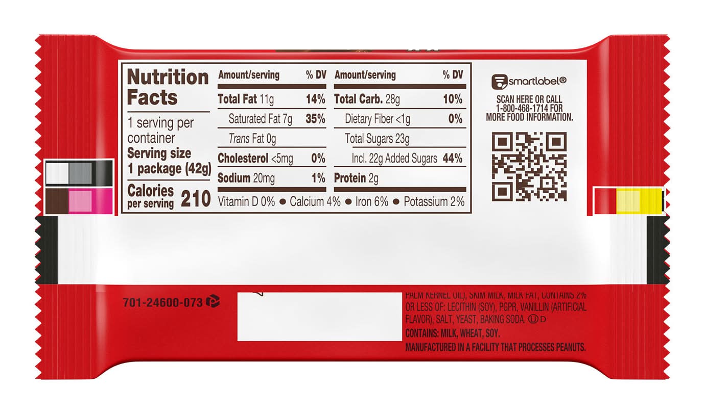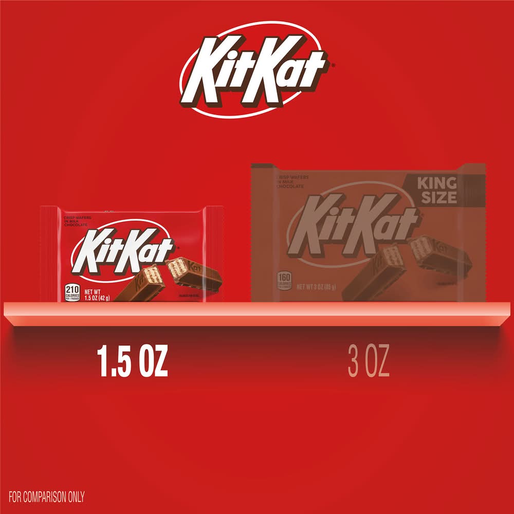 Ready for a classic everyone hopes to find in the candy dish. This kit kat milk chocolate wafer candy bar is individually wrapped for optimal convenience, easy sharing and lasting freshness. Whether you gift it to friends, pass one out in the office or hold onto one for snacking moments, you can expect a delicious treat in the perfect size. Throw a bar in your lunch box to treat yourself to a sweet dessert or stock your home and office candy bowls with an easy snacking classic. Preparing for a specific occasion. Whether you need to put easter baskets together, stuff holiday stockings, fill valentine's day party favors, treat trick-or-treaters or keep your everyday candy collection stocked throughout the year, kit kat candy is the way to go. Getting ready for your next movie night. Add some crispy wafers coated in creamy milk chocolate for an extra special touch that satisfies the whole crowd. You can snack on these chocolate bars straight from the wrapper, chill them in the fridge for a cold treat or top your best baked goods with them to show off your culinary genius. No matter what you decide, it's bound to be a delicious success. Packaging: Reusable