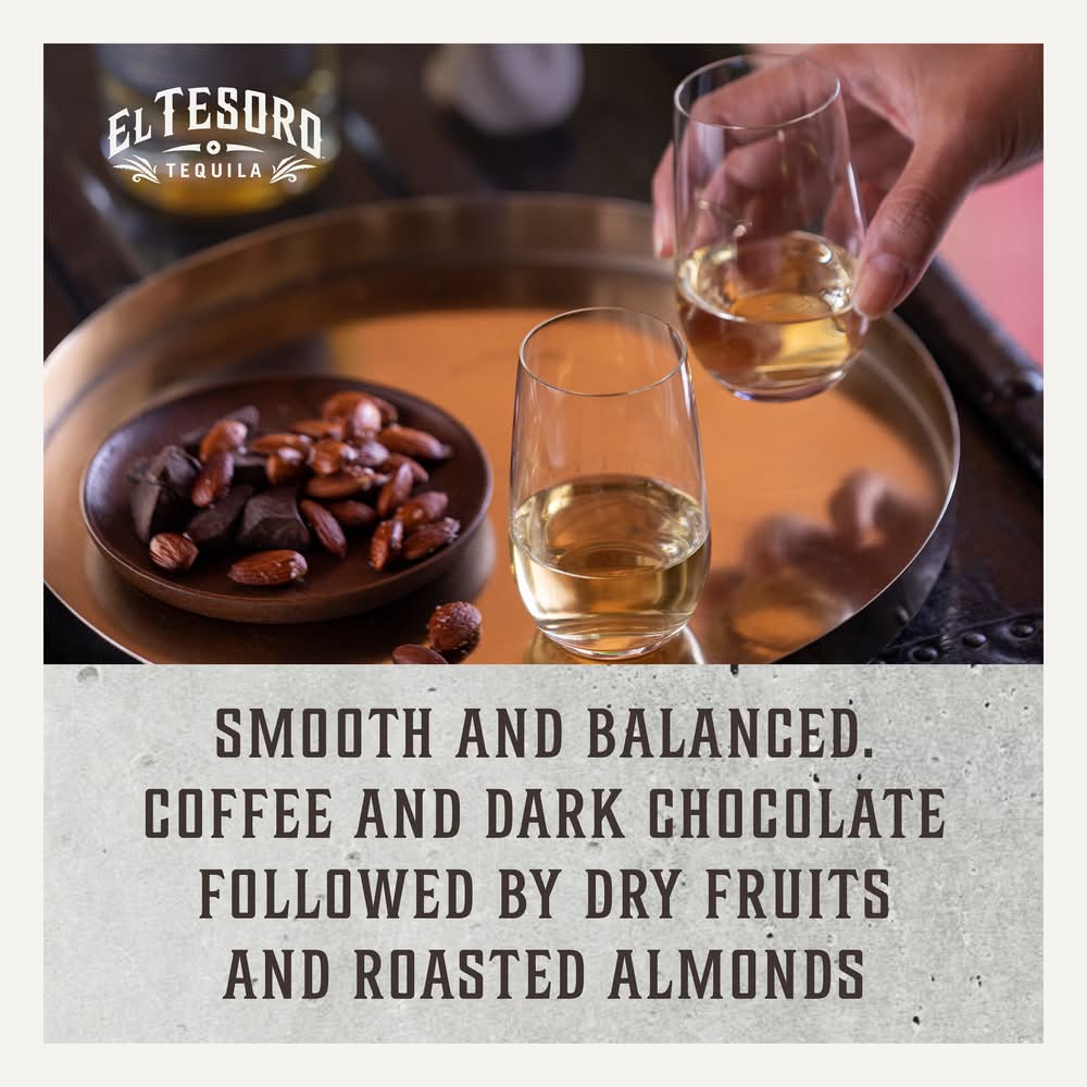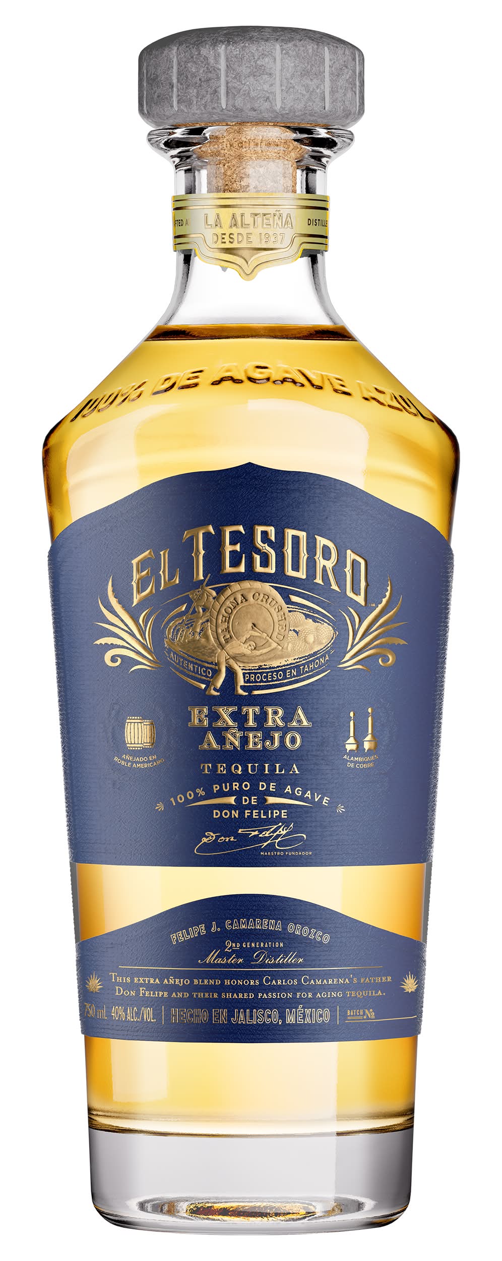 El Tesoro de Don Felipe tequila honors Don Felipe Camarena, the man who established La Alteña Distillery in 1937, where El Tesoro continues to be distilled today. El Tesoro tequila is 'the treasure' of Jalisco, created in celebration of Don Felipe's most precious asset: his agaves. El Tesoro Extra Añejo is rested in ex-bourbon barrels by Carlos's father, Don Felipe J. Camarena Orozco and aged 4-5 years, El Tesoro Extra Añejo is a unique treasure with outstanding flavors. The taste is smooth and very well-balanced. Coffee and dark chocolate are present, followed by dry fruits and roasted almonds. The finish brings forward a hint of pepper with an oak flavor. • Alcohol by volume: 40% • Packaging: Reusable