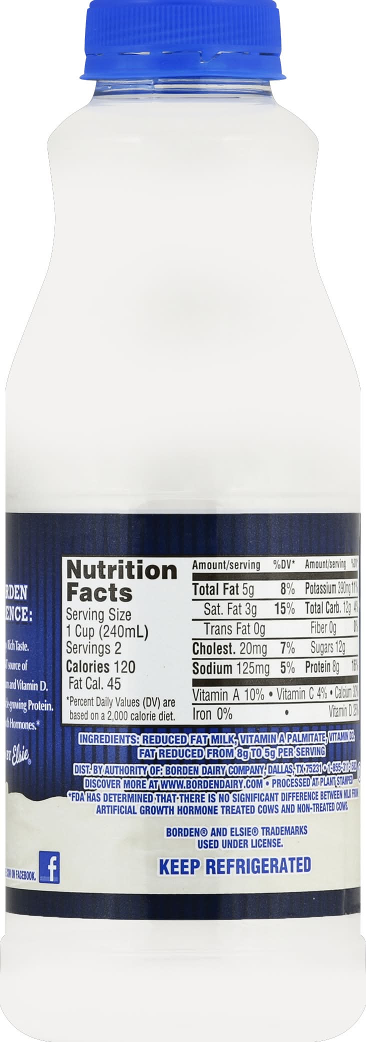 Since 1857. Creamy rich taste. 38% less fat than regular milk. Grade A past. Vit A & D. Local. Fresh. Delicious. Always creamy rich taste. An excellent source of bone-building calcium and vitamin D. A good source of muscle-growing protein. No artificial growth hormone (FDA has determined that there is no significant difference between milk from artificial growth hormone treated cows and non-treated cows). • Brand: Borden • kosher