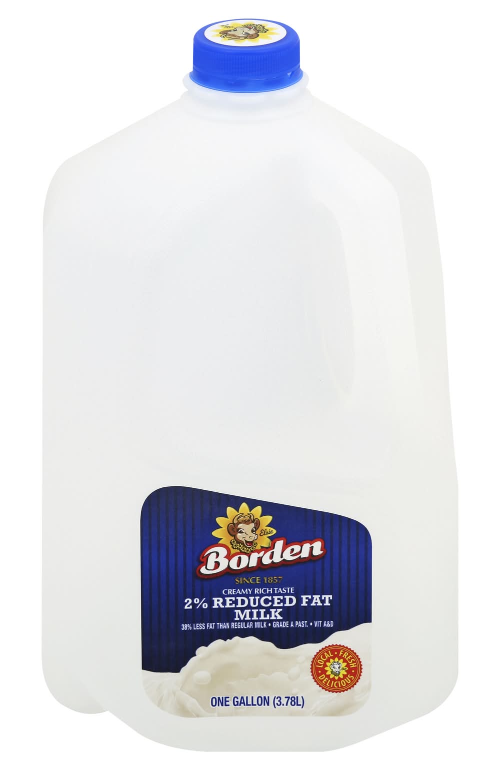 Creamy rich taste. 30% less fat than regular milk. The Borden Difference: Always creamy rich taste. An excellent source of bone-building calcium and vitamin D. A good source of muscle-growing protein. No artificial growth hormones (FDA has determined that there is no significant difference between milk from artificial growth hormone treated cows and non-treated cows). • Brand: Borden • kosher • Borden, Dallas, TX.