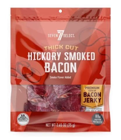 Tender cuts of hickory smoked bacon jerky. Brand: 7-select meat snacks single