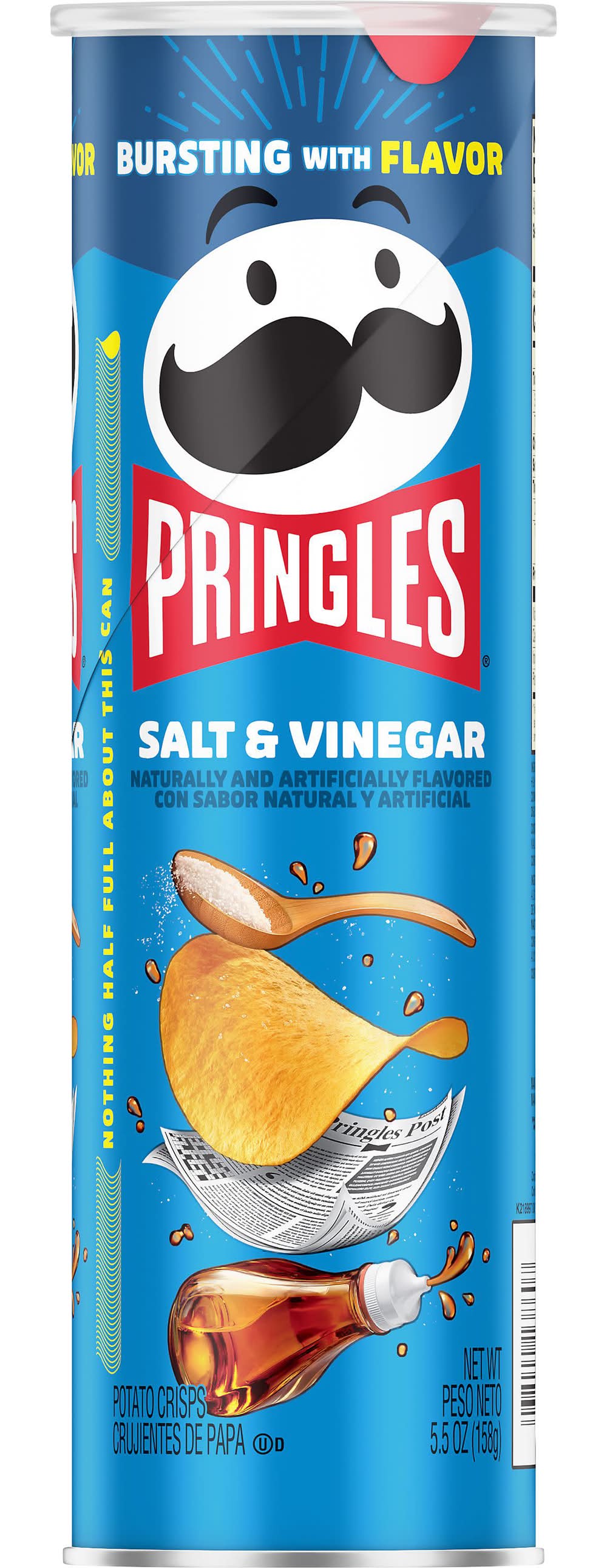 Deliciously seasoned Salt and Vinegar Flavored Pringles Potato Crisps from edge to edge for a mouthwatering taste and perfect crunch. With their delicious taste and original, stackable shape, Potato Crisps always inspire good times with friends - and the convenient, portable can gives you the freedom to snack when and where you want. Grab a can for the office, pack a snack for school, bring them in the car, or share a stack with friends - however you eat them, you'll love the fun shape and delicious taste of Potato Crisps. • Brand: Pringles • Flavor: Salt & vinegar