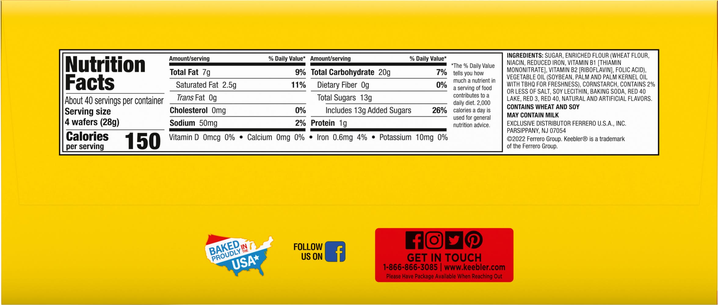 Sugar Wafers, Strawberries, King Size • Brand: Keebler • Flavor: Strawberry • Size: King • kosher