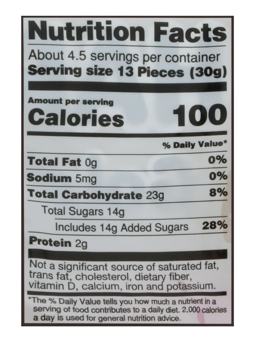 Natural and artificial fruit flavors of Orange, Strawberry, Lemon, Pineapple, Raspberry. The original since 1922. Kids and grown-ups love it so. A serving is a little handful. In this case it's approx 13 pieces. • Brand: Haribo • Flavor: Assorted • Haribo of America, Inc., Rosemont IL 60018