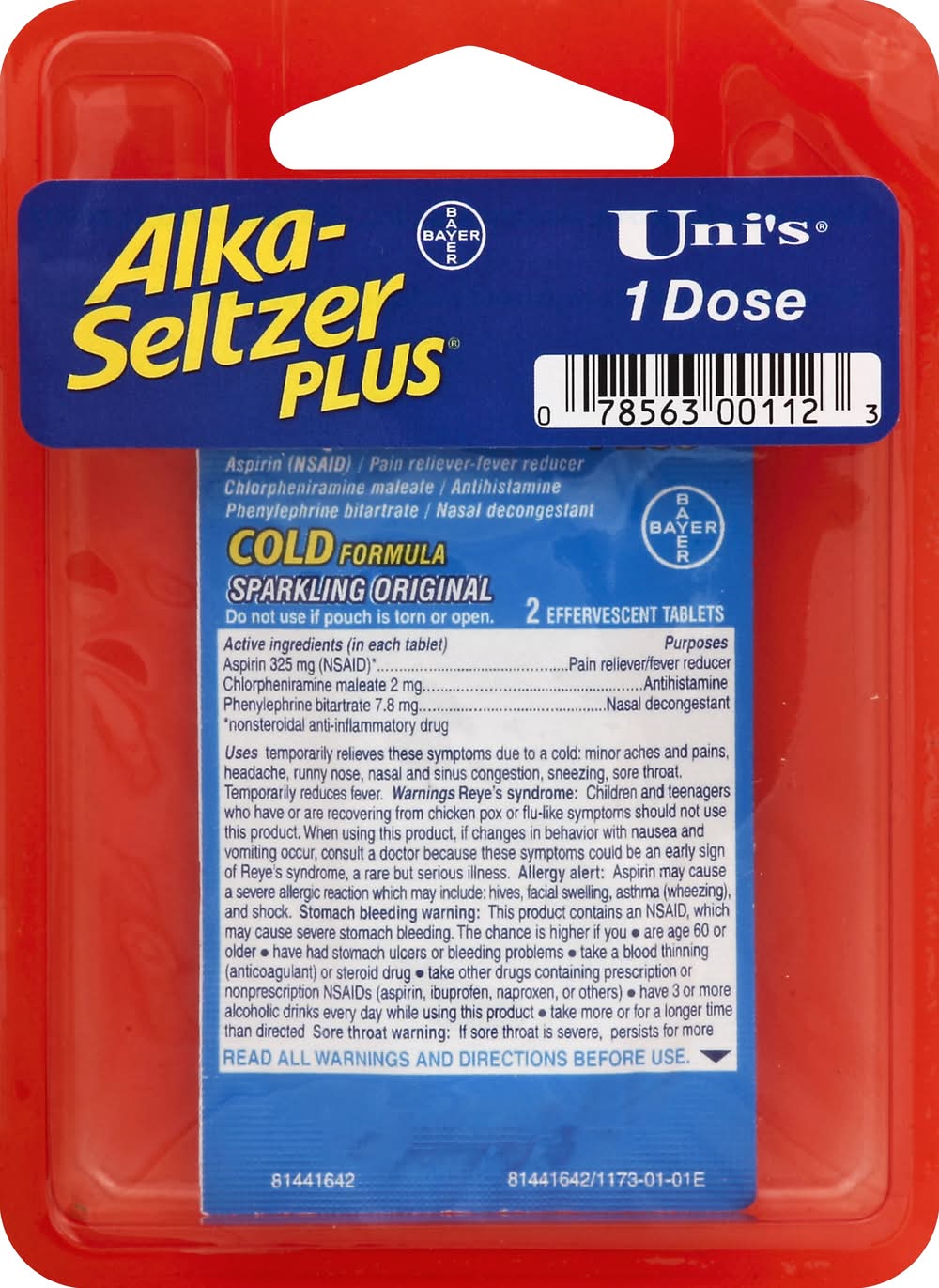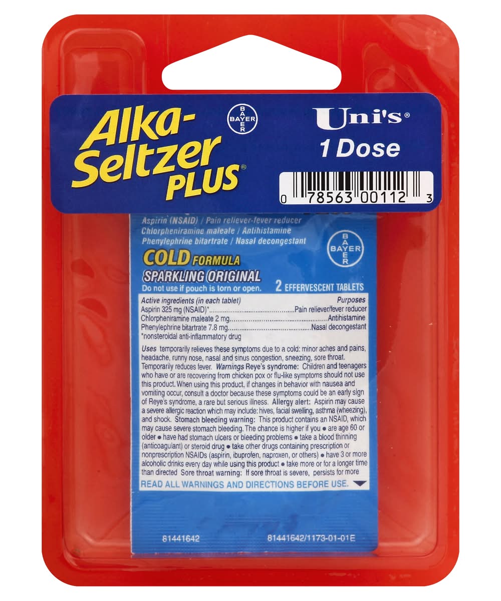 Uni's Alka-Seltzer Plus Cold Formula Sparkling (2 ct)