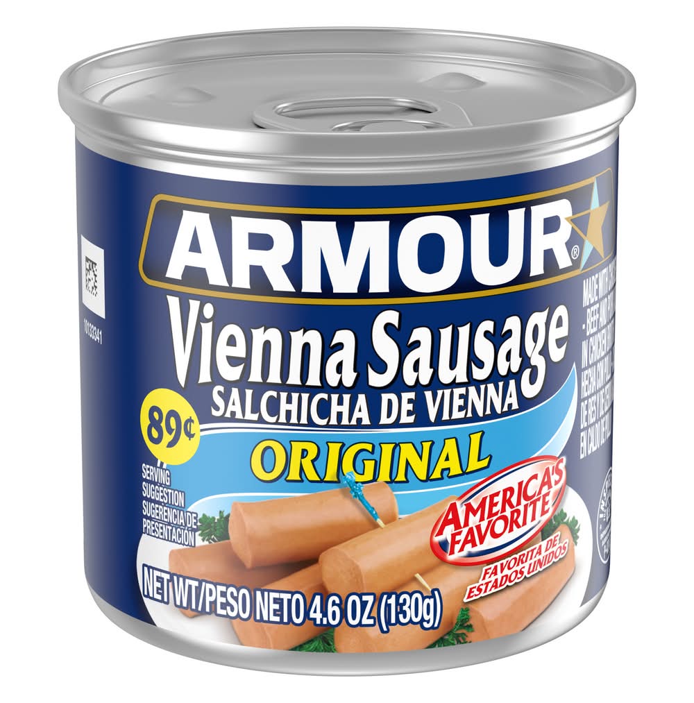 Offers ready to eat sausage with great flavor. The canned Vienna sausages are made with chicken, beef and pork. This Vienna sausage can be eaten right out of the can, so you can enjoy this canned food as a ready to eat sausage snack. Try adding them to your favorite recipes, or serve them as an appetizer everybody will love. Store the canned sausage in your pantry so you’ll always have some delicious Vienna sausage on hand. You can also keep these sausages as survival food in your emergency disaster kit. Keep the small sausages refrigerated after opening to keep fresh for next time. Make any time Star time.