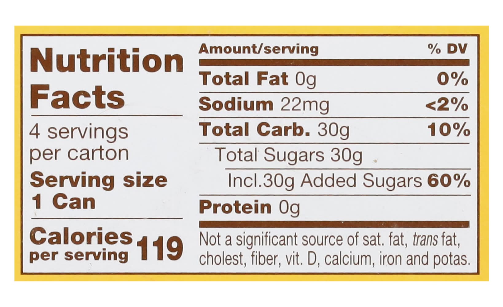 Ingredients: Carbonated Water, High Fructose Corn Syrup, Natural & Artificial Ginger Flavouring, Citric Acid, Neutral Cloud, Sodium Benzoate (as a Preservative) Natural Extract of Quillaia Bark, Caramel Colour Contains: Corn