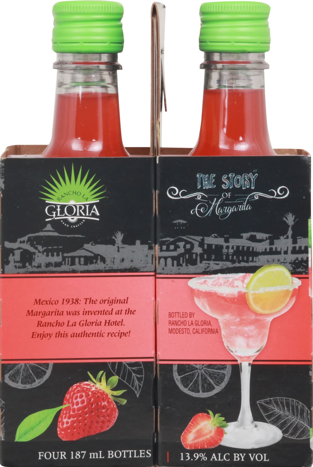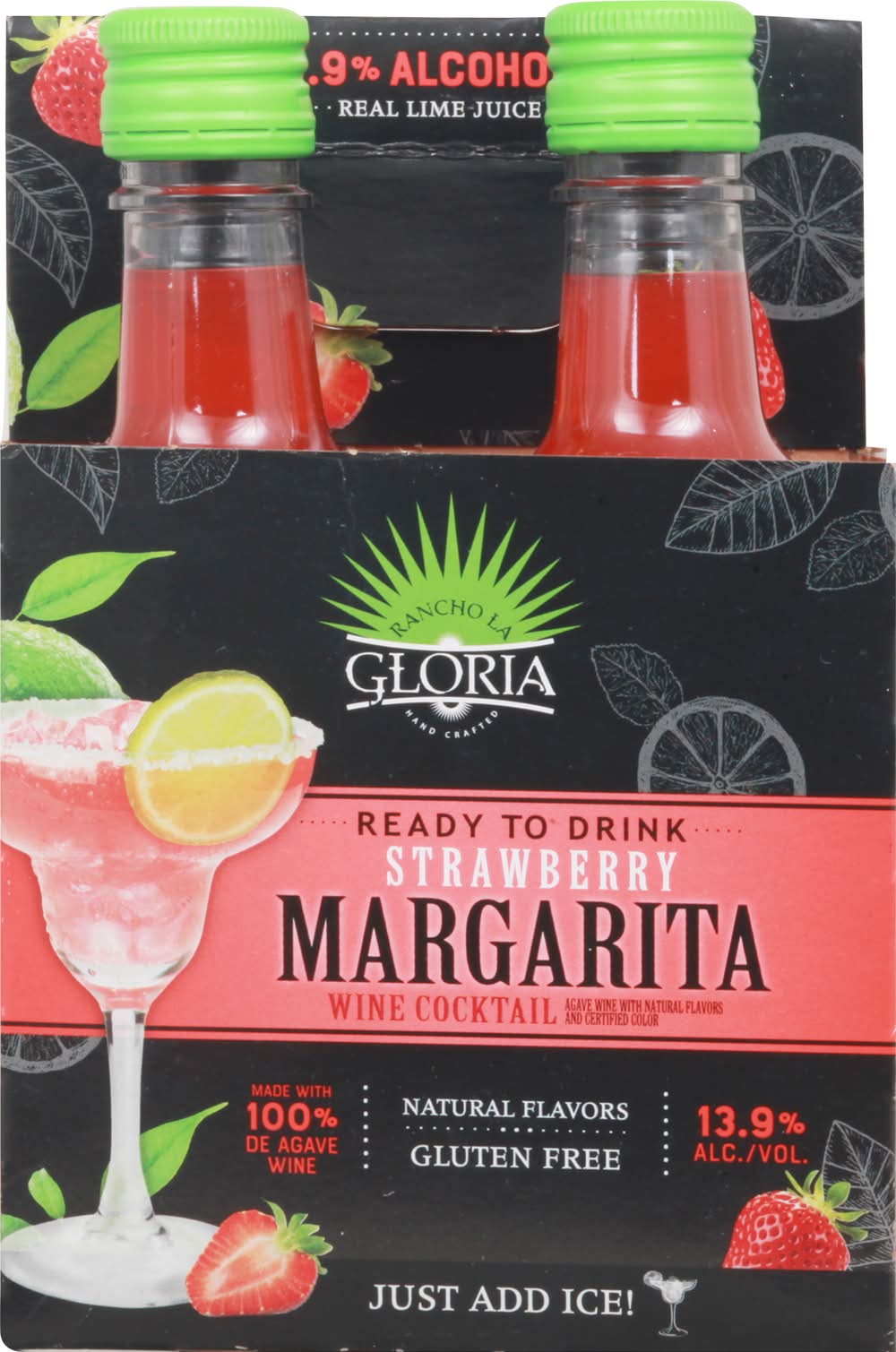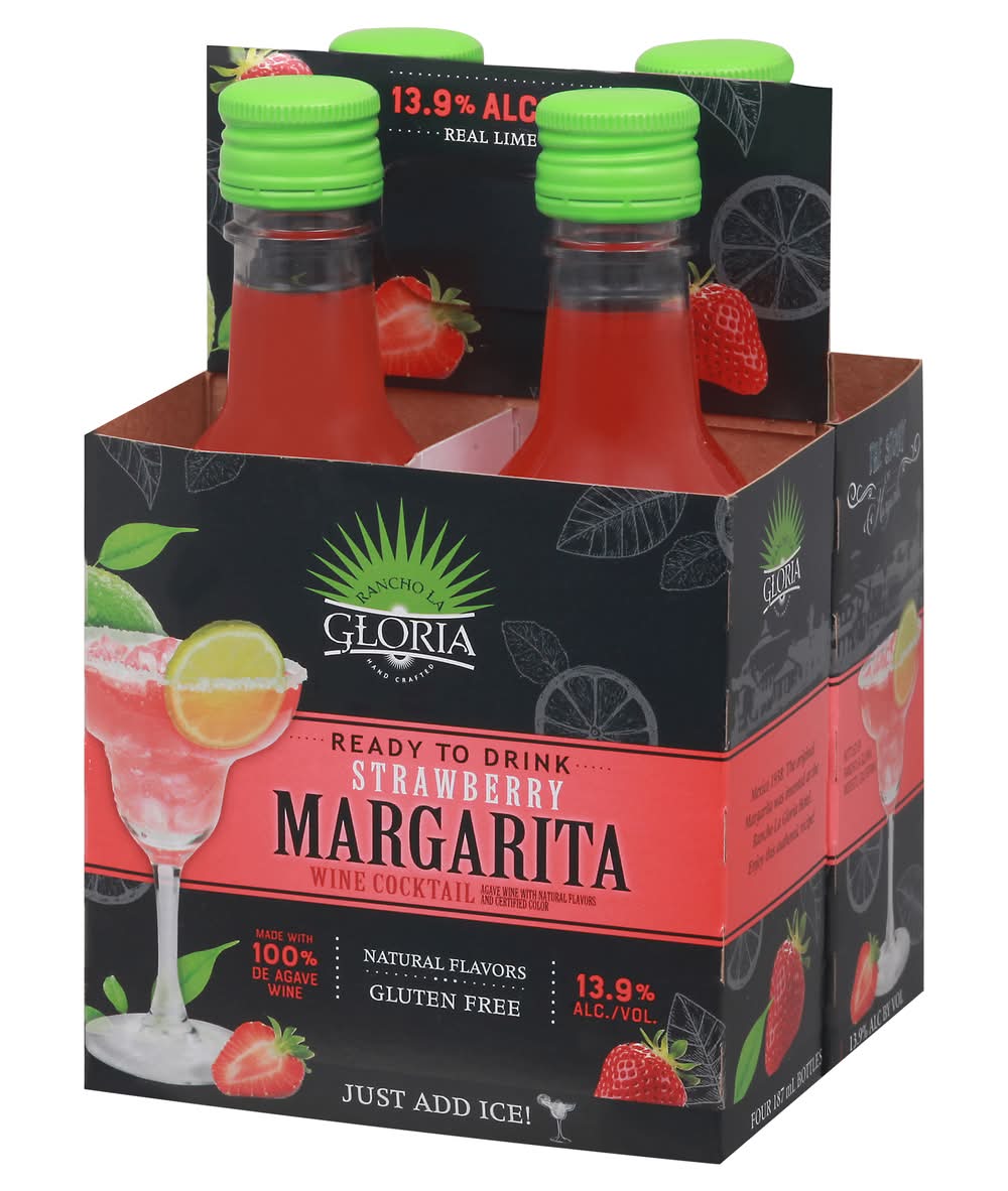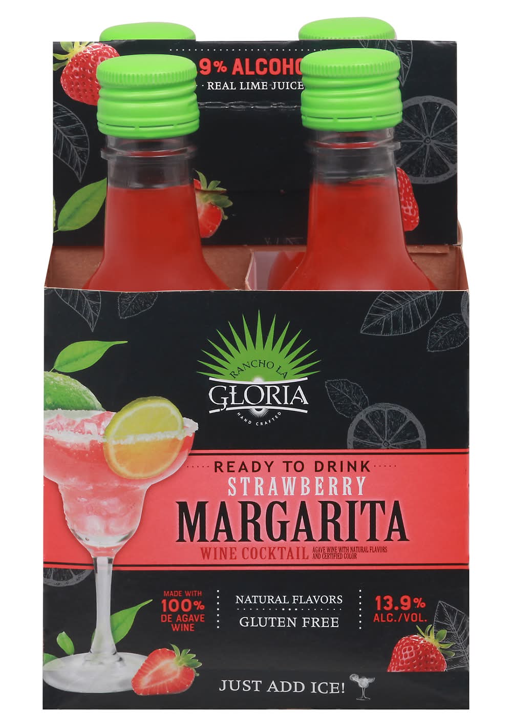Wine Cocktail, Margarita, Strawberry • Flavor: Strawberry • Pack size: 4 • Alcohol by volume: 13.9% • Rancho La Gloria, Modesto,California