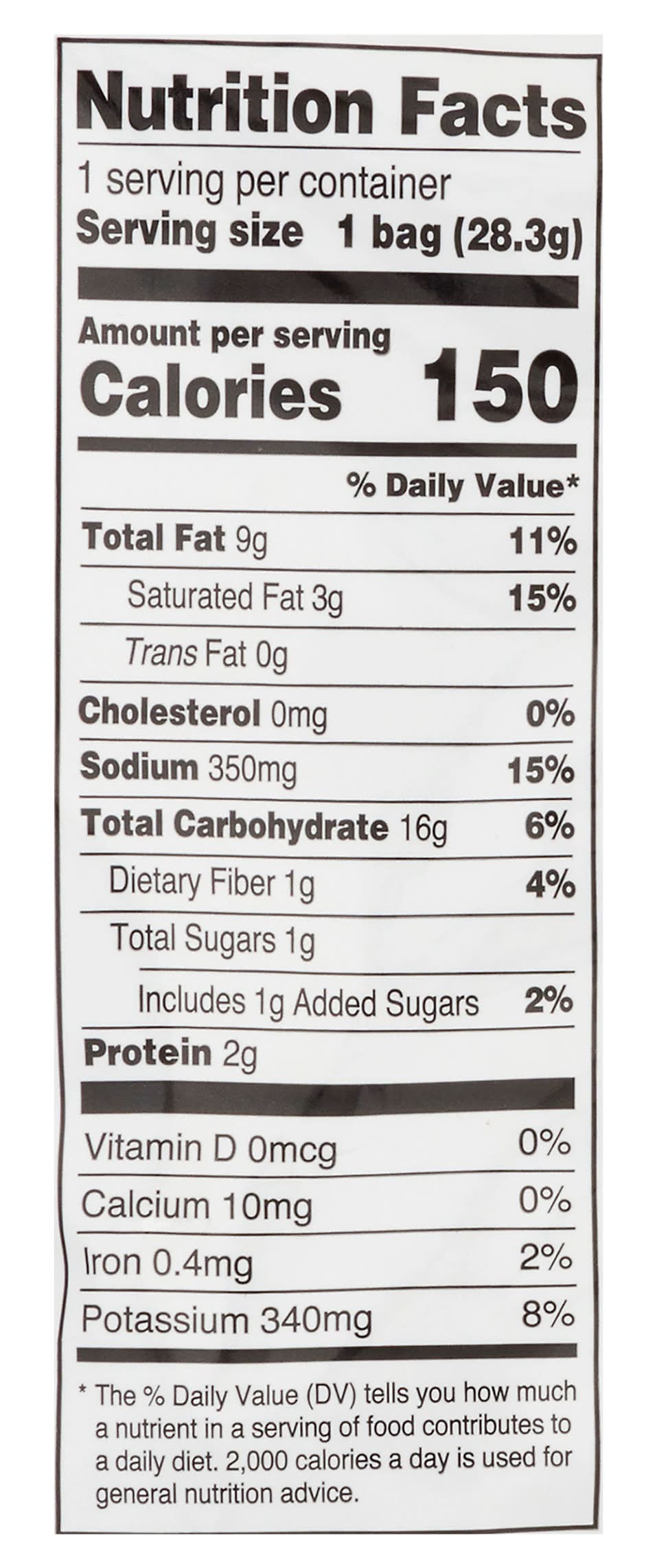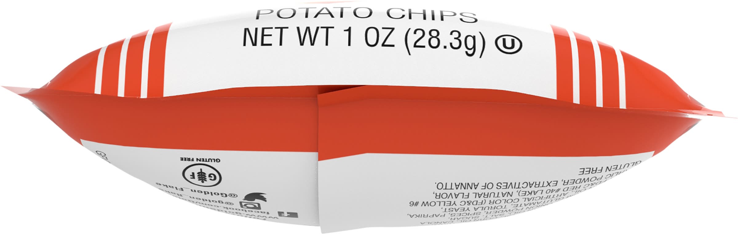 Ingredients: Potatoes, Vegetable Oil (May Contain One or More of the Following: Cottonseed Oil, Palm Oil, Corn Oil, Canola Oil, and/or Soybean Oil), Salt, Sugar, Maltodextrin, Onion Powder, Spices, Paprika, Monosodium Glutamate, Torula Yeast, Soybean Oil, Artificial Color (FD&C Yellow 6 Lake, FD&C Red 40 Lake), Natural Flavor, Garlic Powder, Extractives of Annatto Contains: Corn, Soybeans