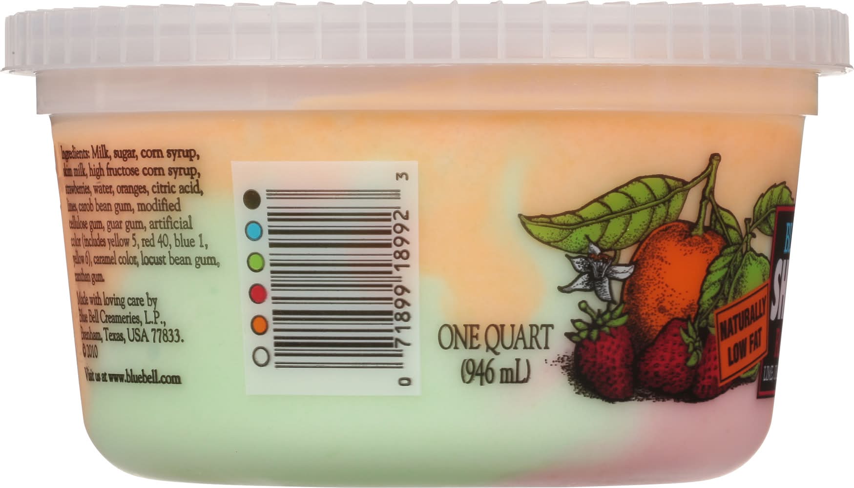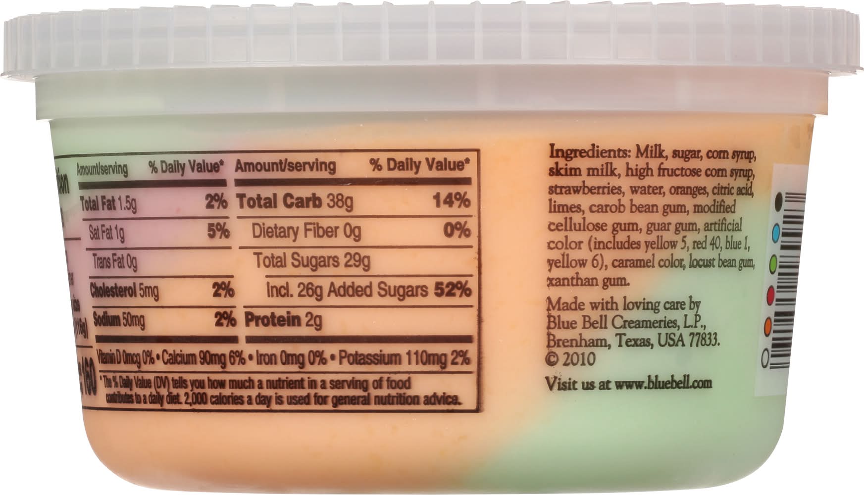 • Flavor: Lime orange & strawberry • Blue Bell Creameries, L.P., Brenham TX 77833 • Packaging: Reusable