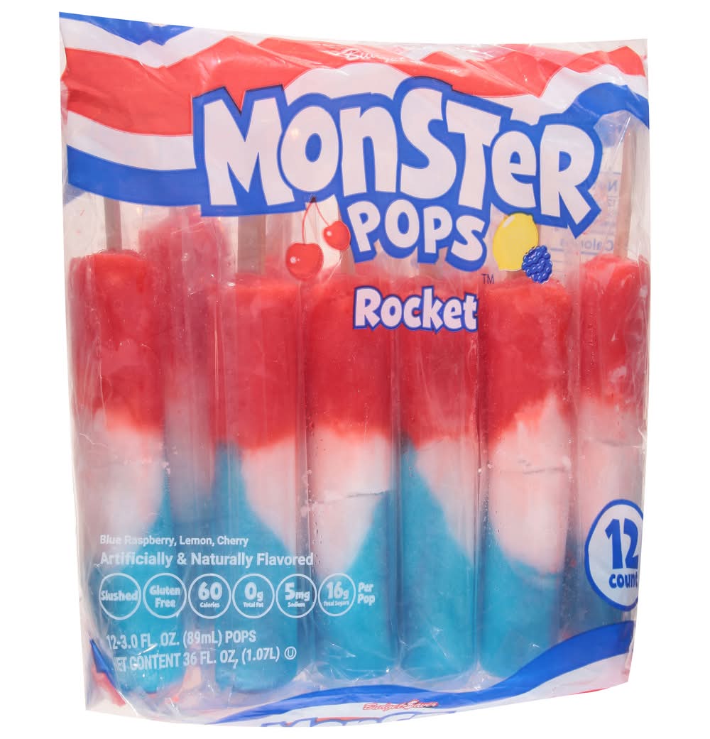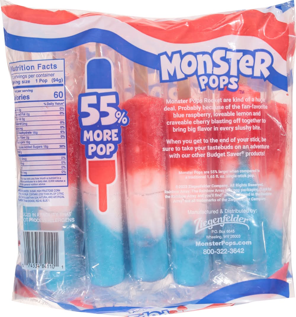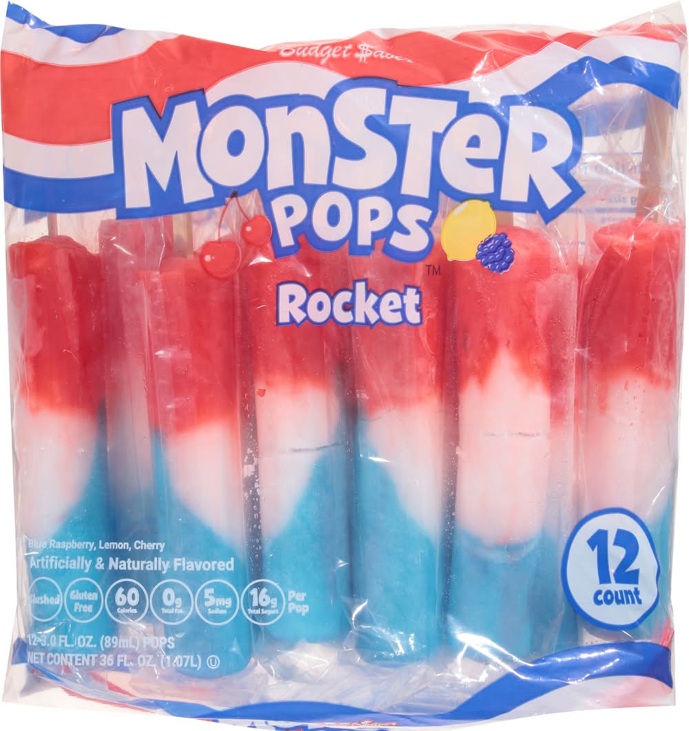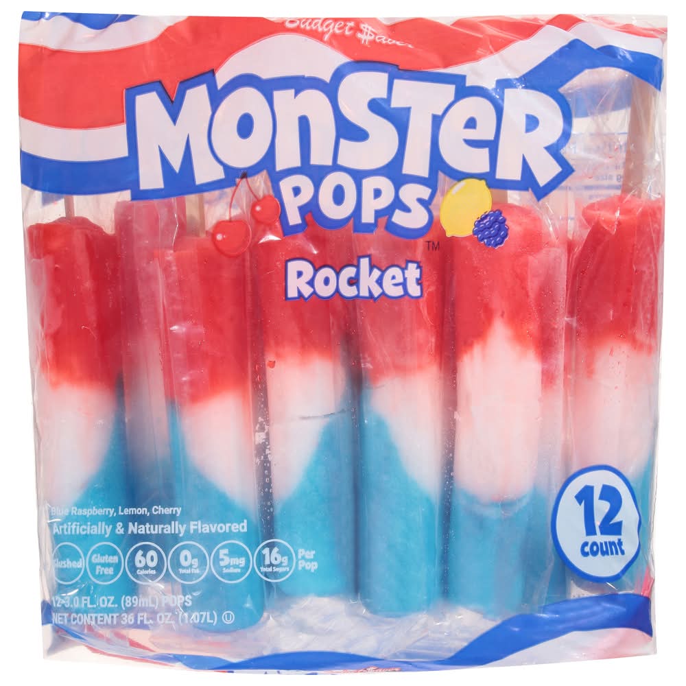 Budget Saver Monster Pops Rockets, Blue Raspberry Lemon Cherry (12 x 3 fl oz)