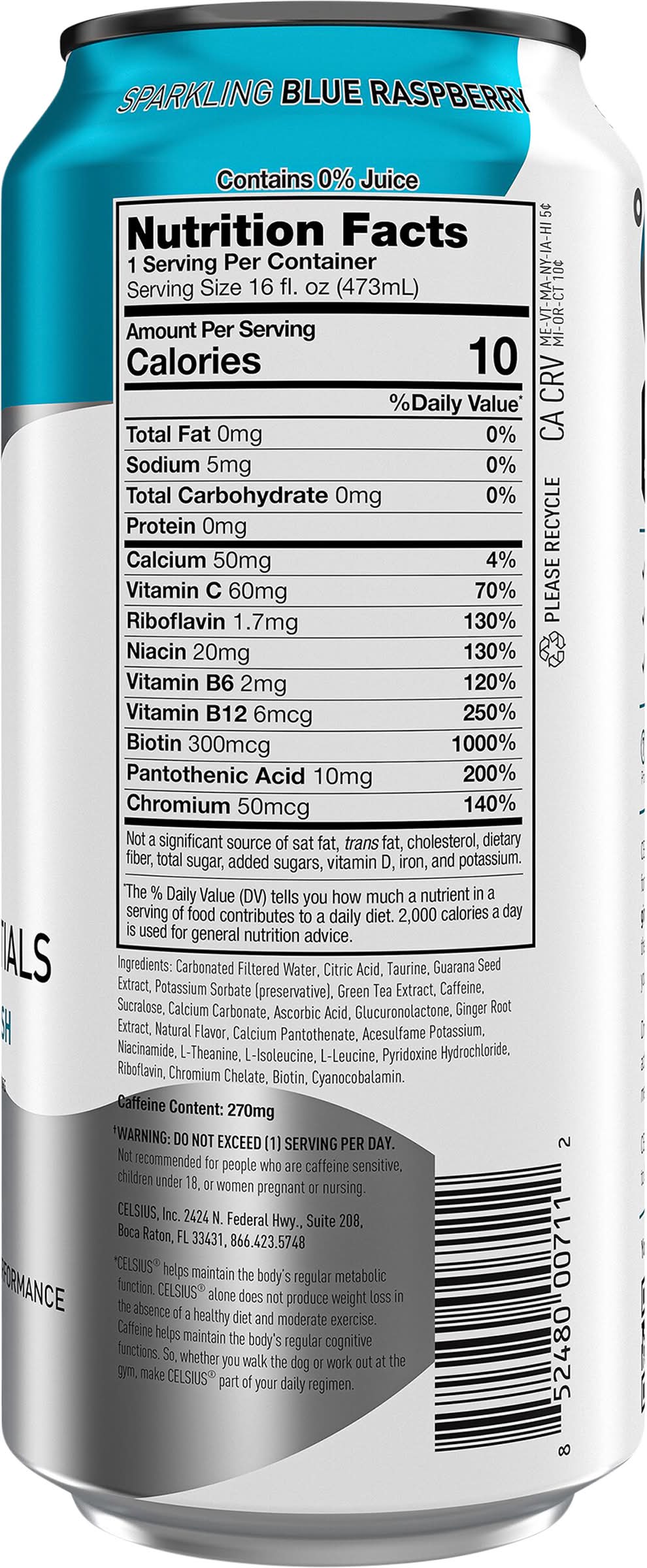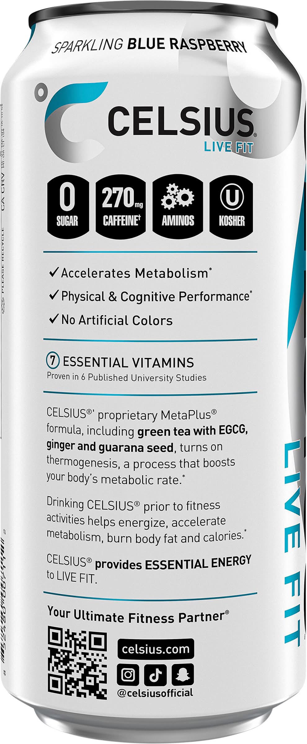Celsius Live Fit Essentials Sparkling Energy Drink, Blue Crush (16 fl oz)