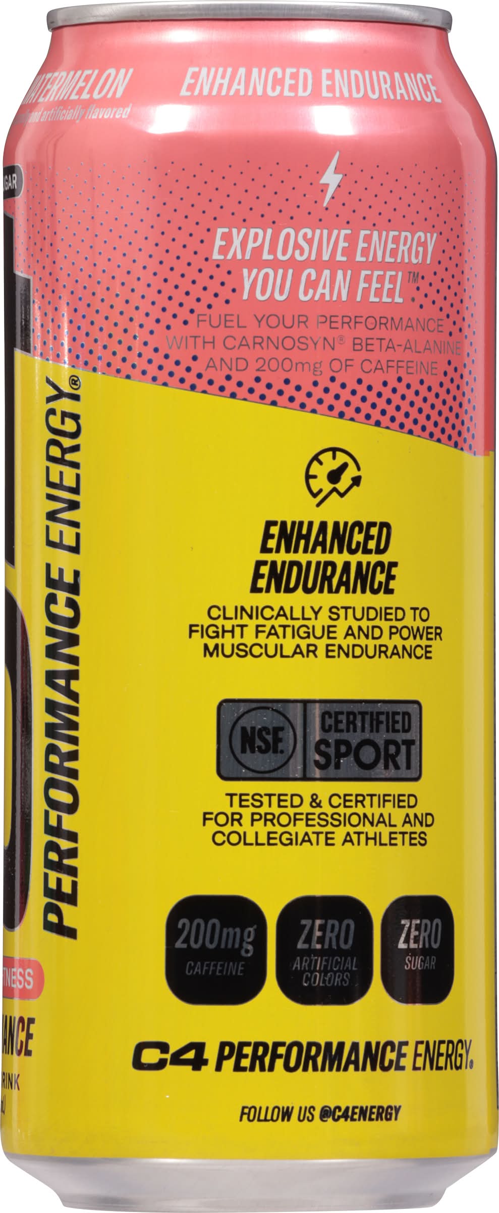 Explosive Energy You Can Feel Fuel your performance with Carnosyn beta-alanine Enhanced endurance Clinically studied to fight fatigue and power muscular endurance Energy You Can Feel. • Brand: C4 • Flavor: Jolly rancher watermelon • Packaging: Reusable